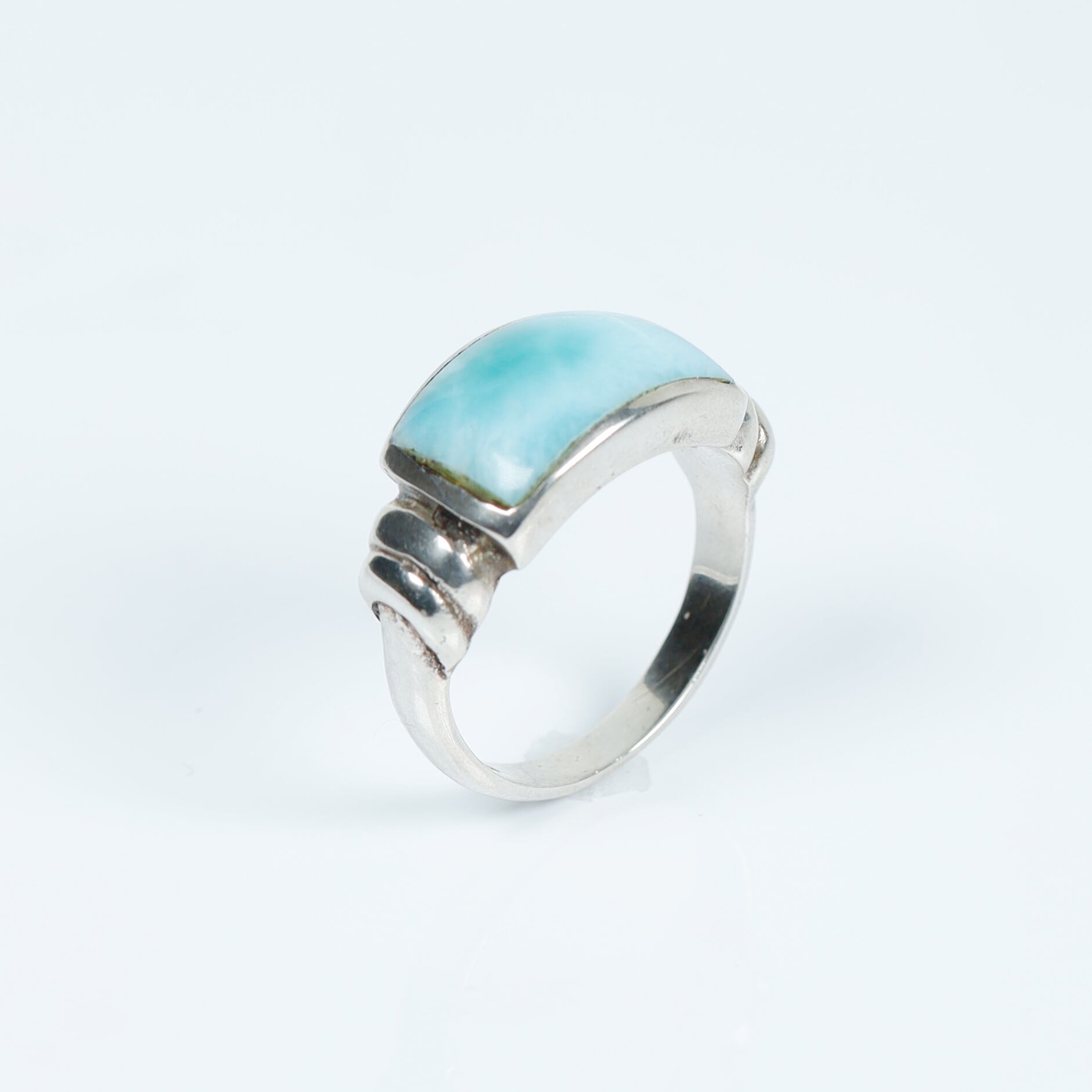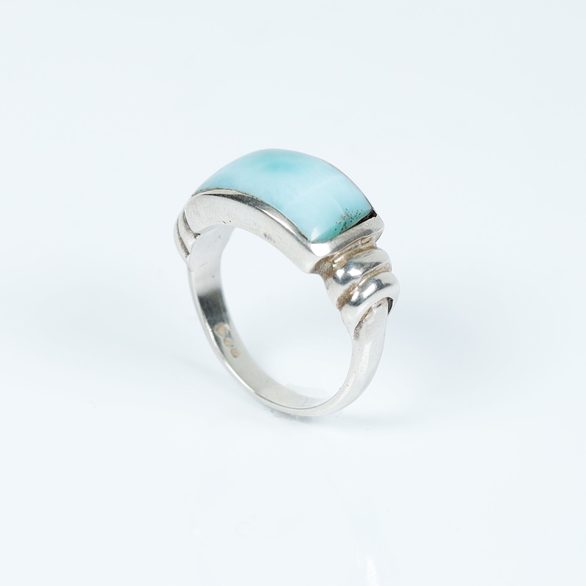 柔らかい表情のラリマーをセッティングしたビンテージシルバーリング