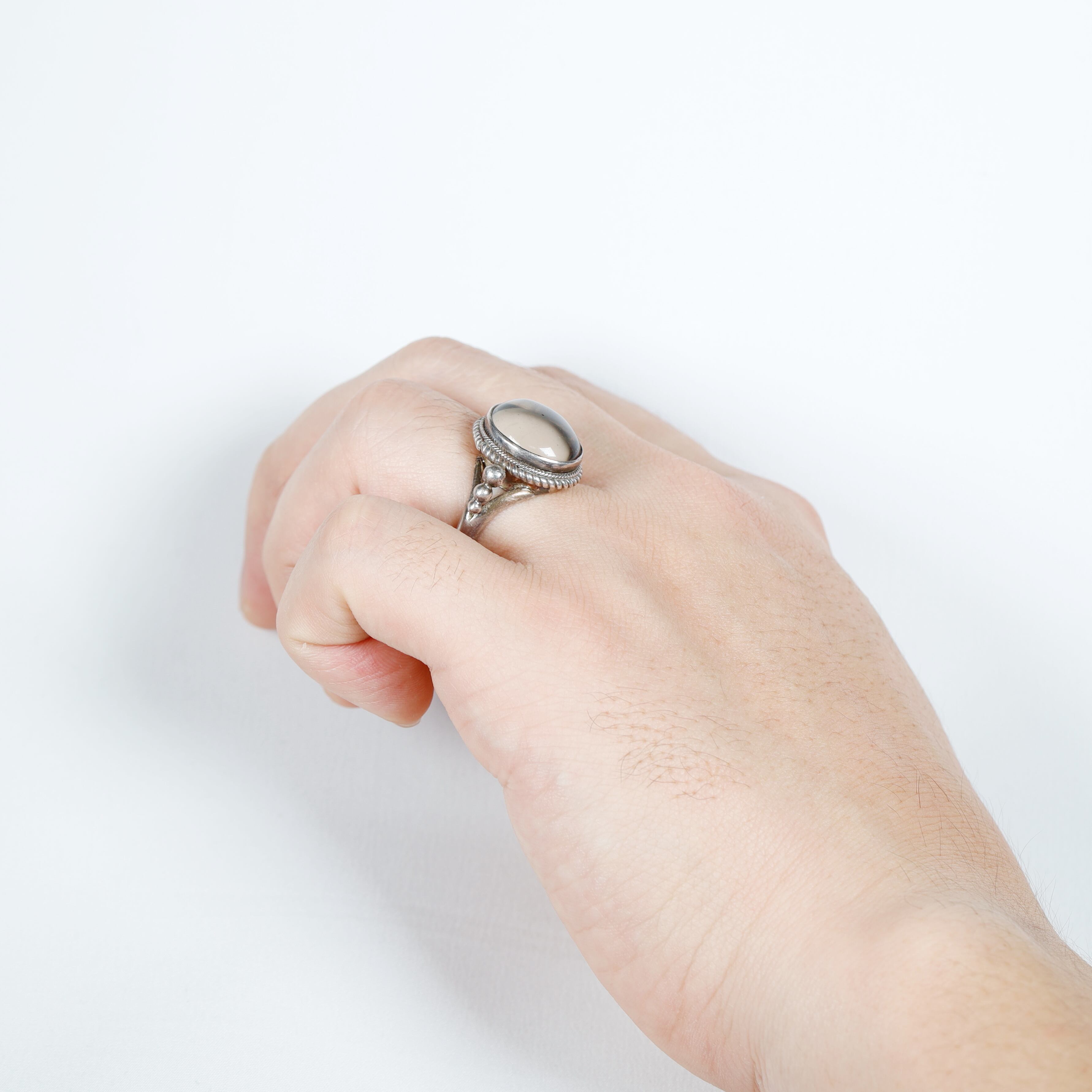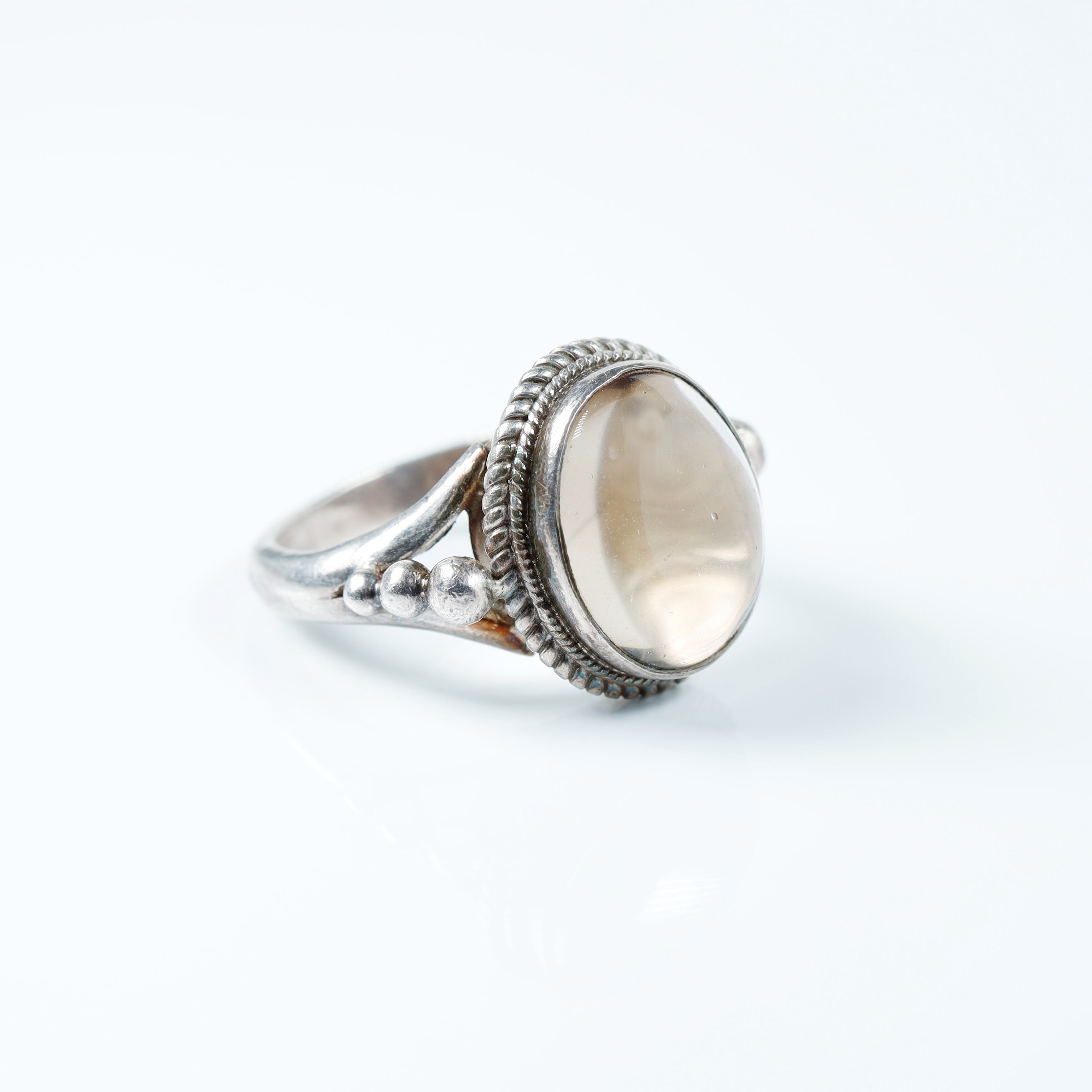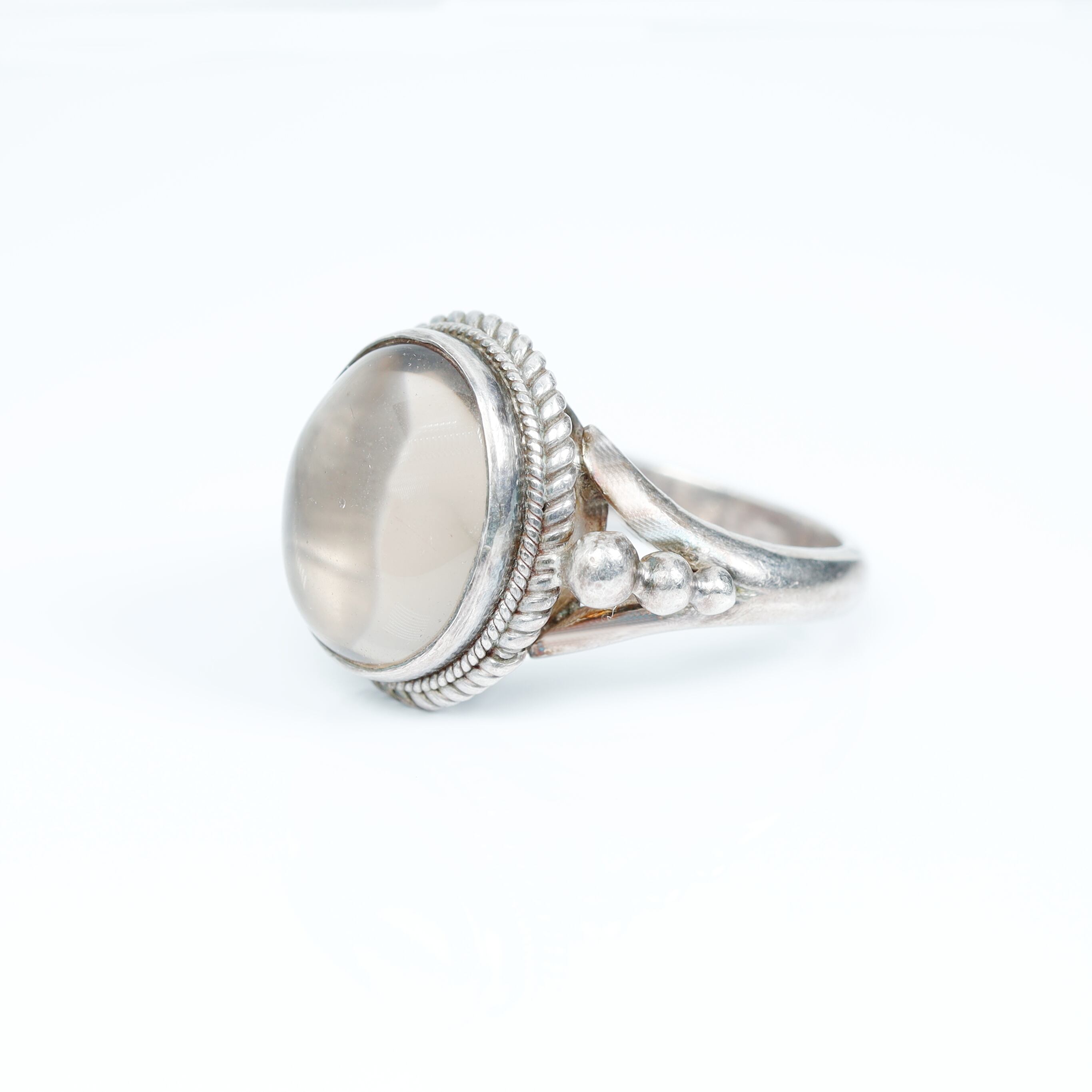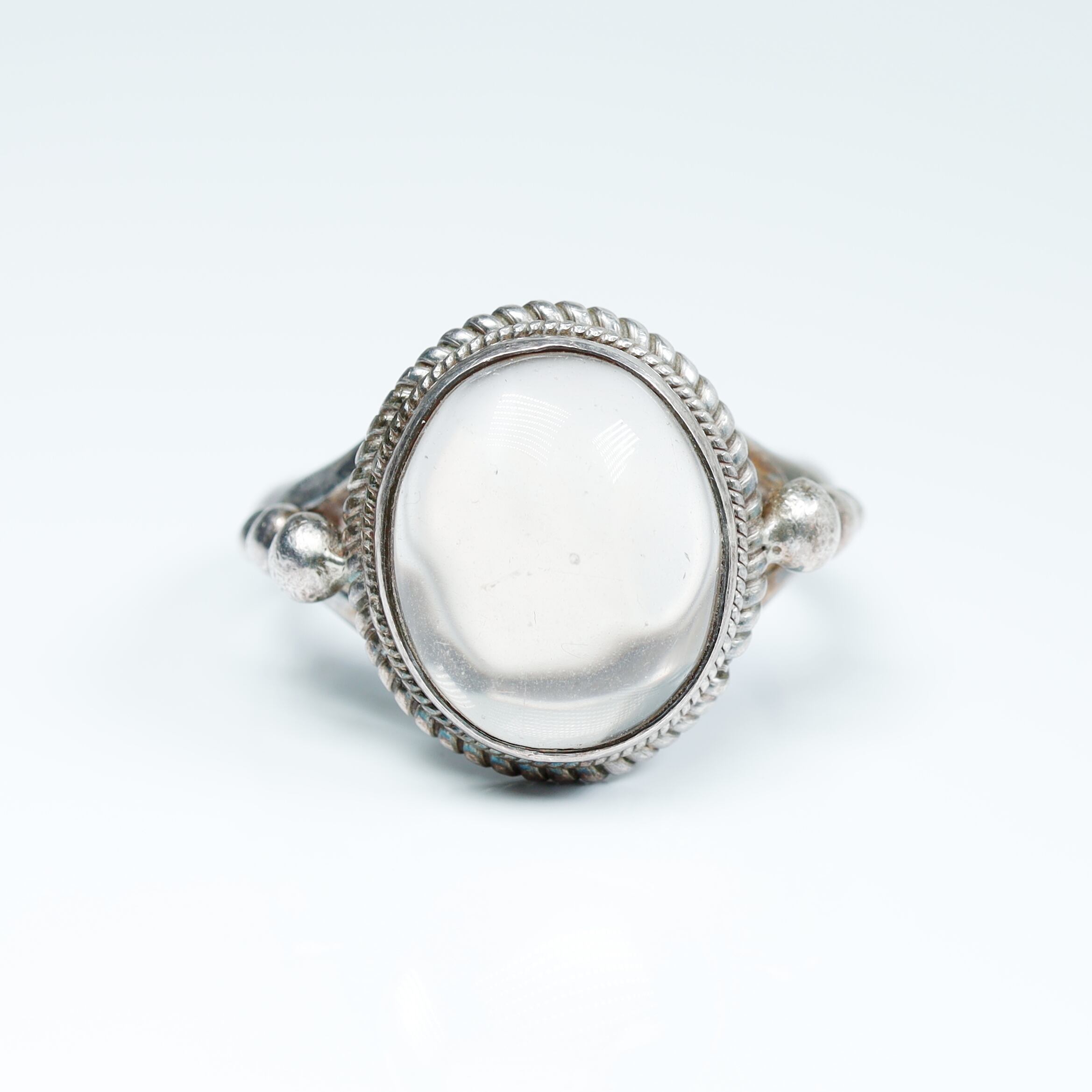 透明感のある水晶を贅沢に使用したシルバーリングです。