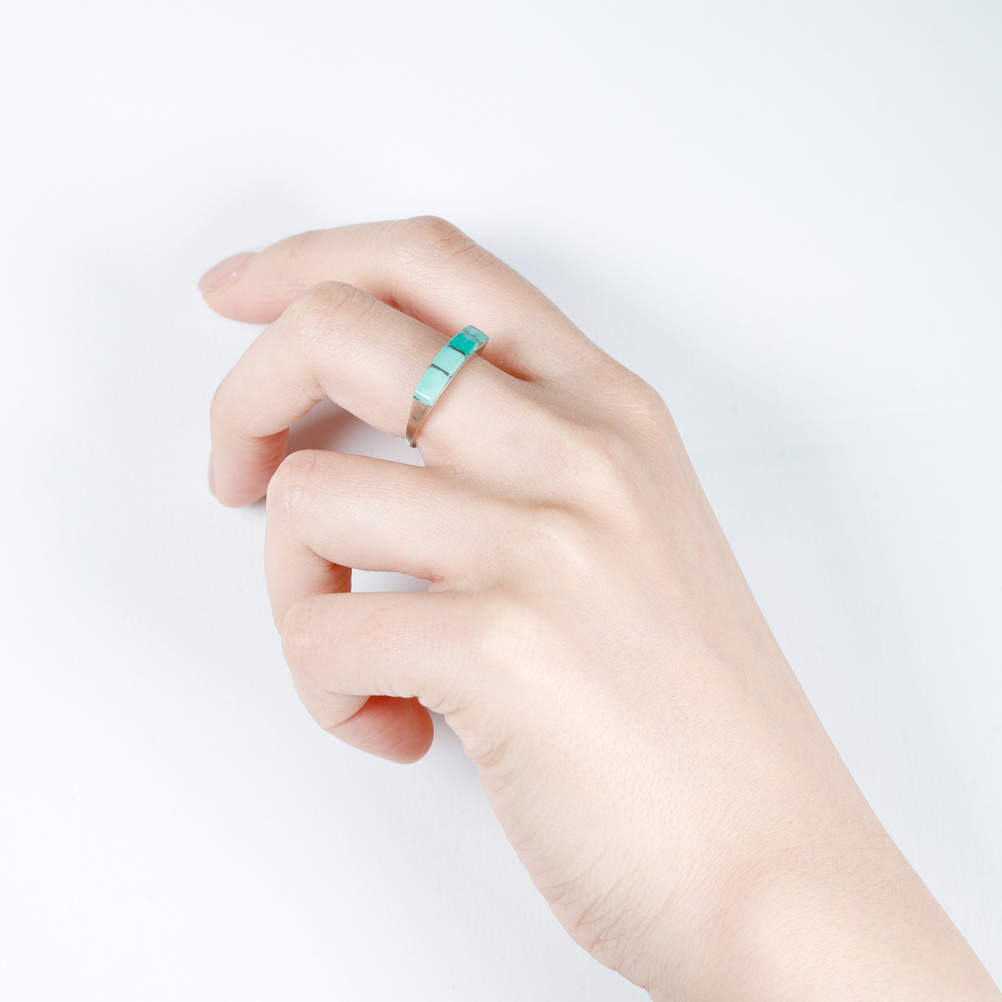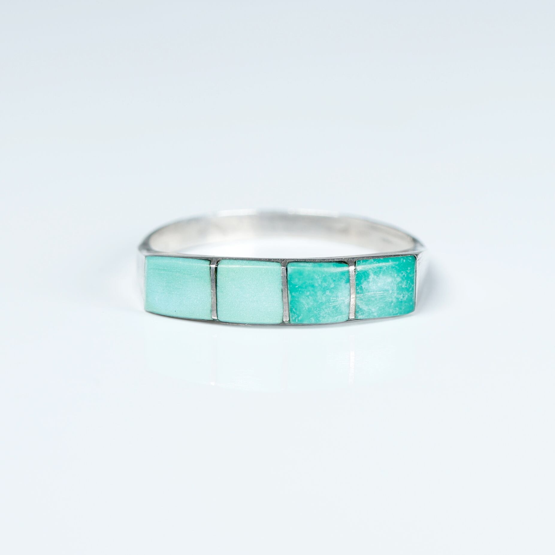 シルバーリングに4石のターコイズをセッティング。
