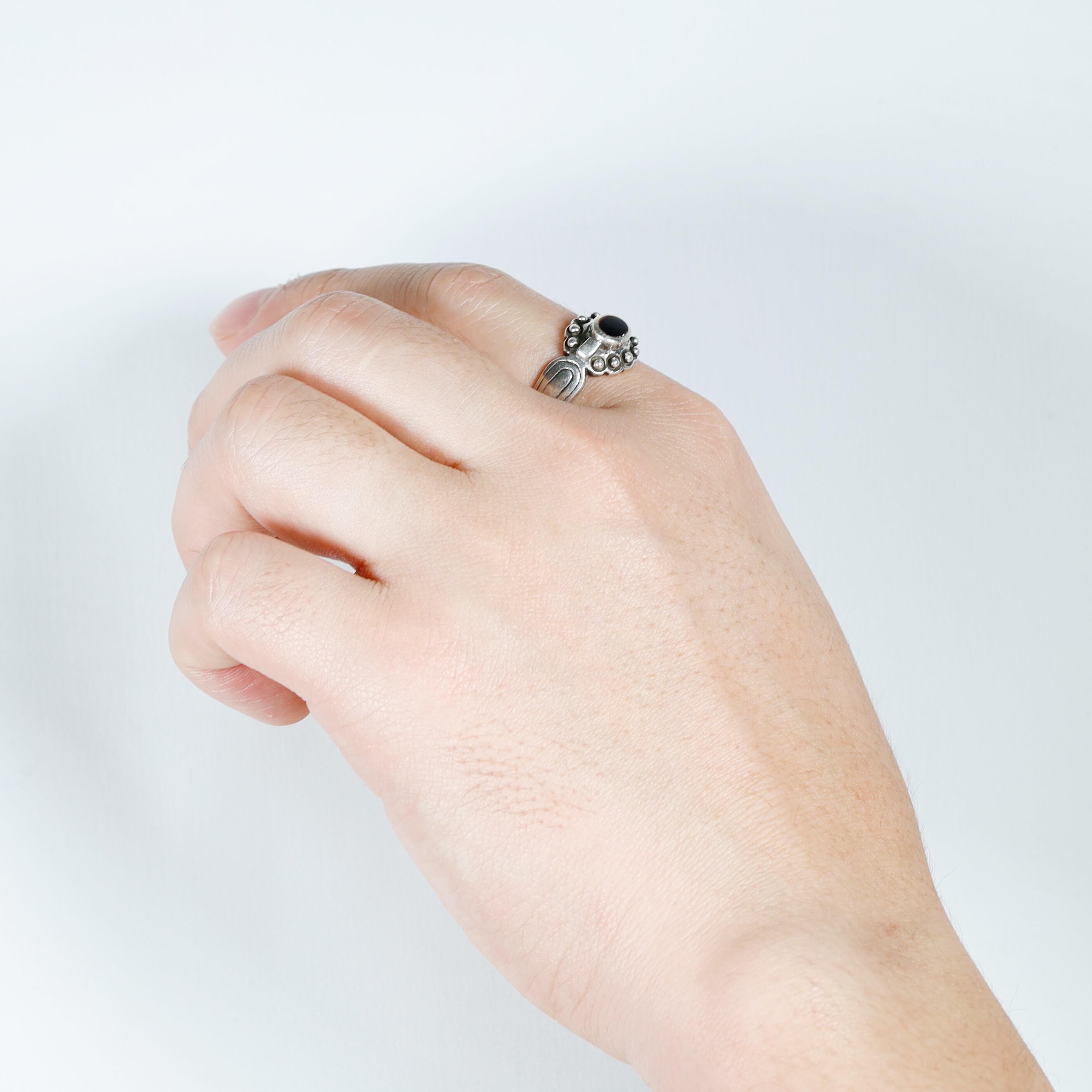 シンプルながらも装飾で差をつけたオニキスのリング