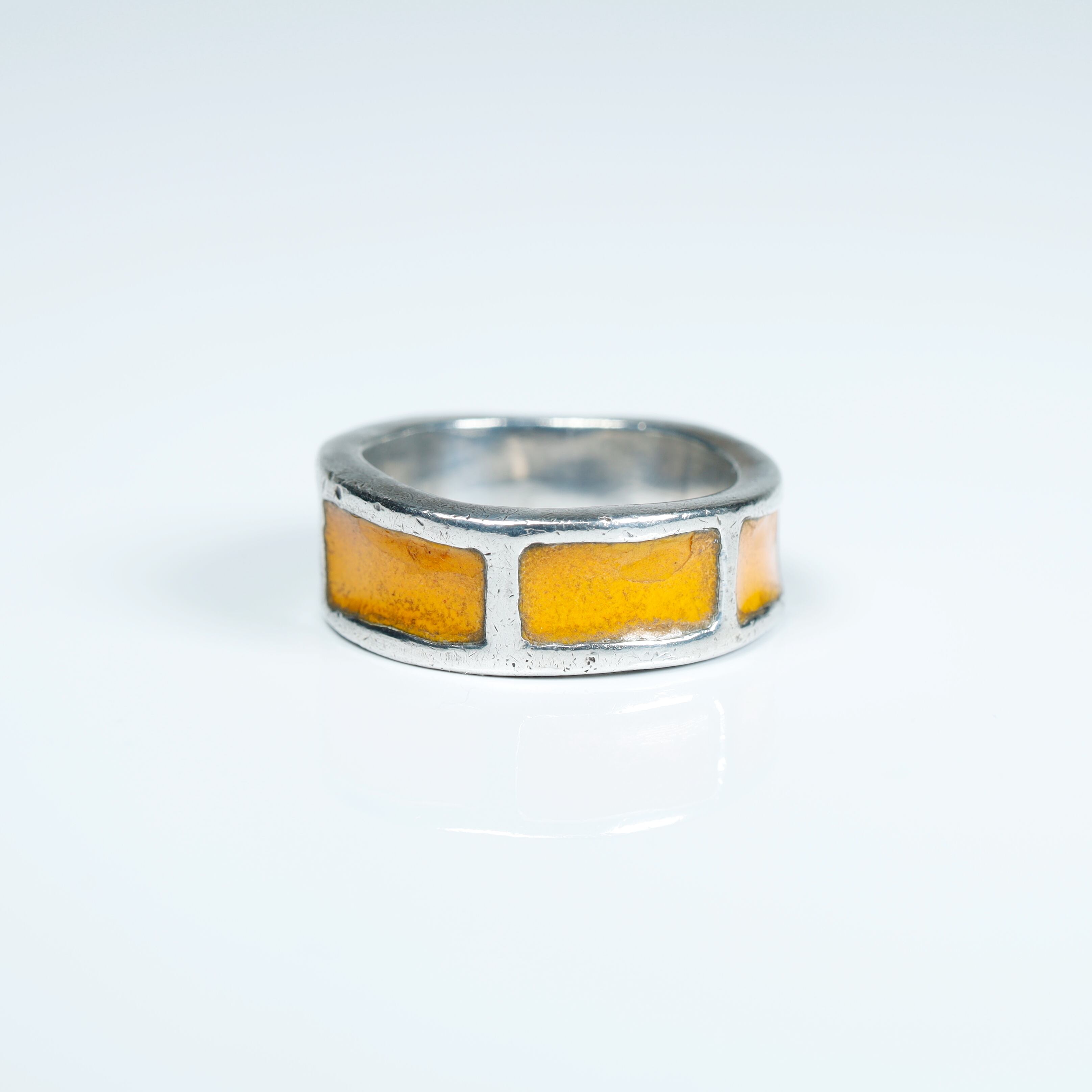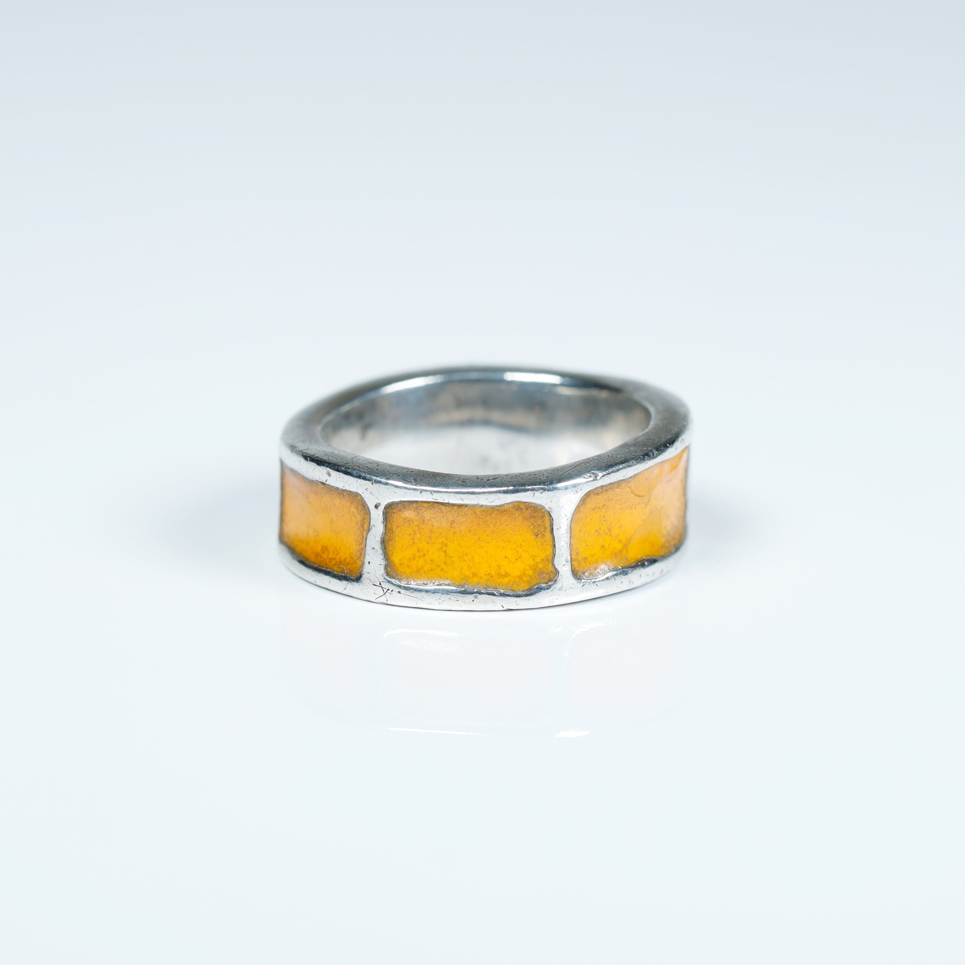 シルバーリングに黄色の色付きガラスを纏わせたリング