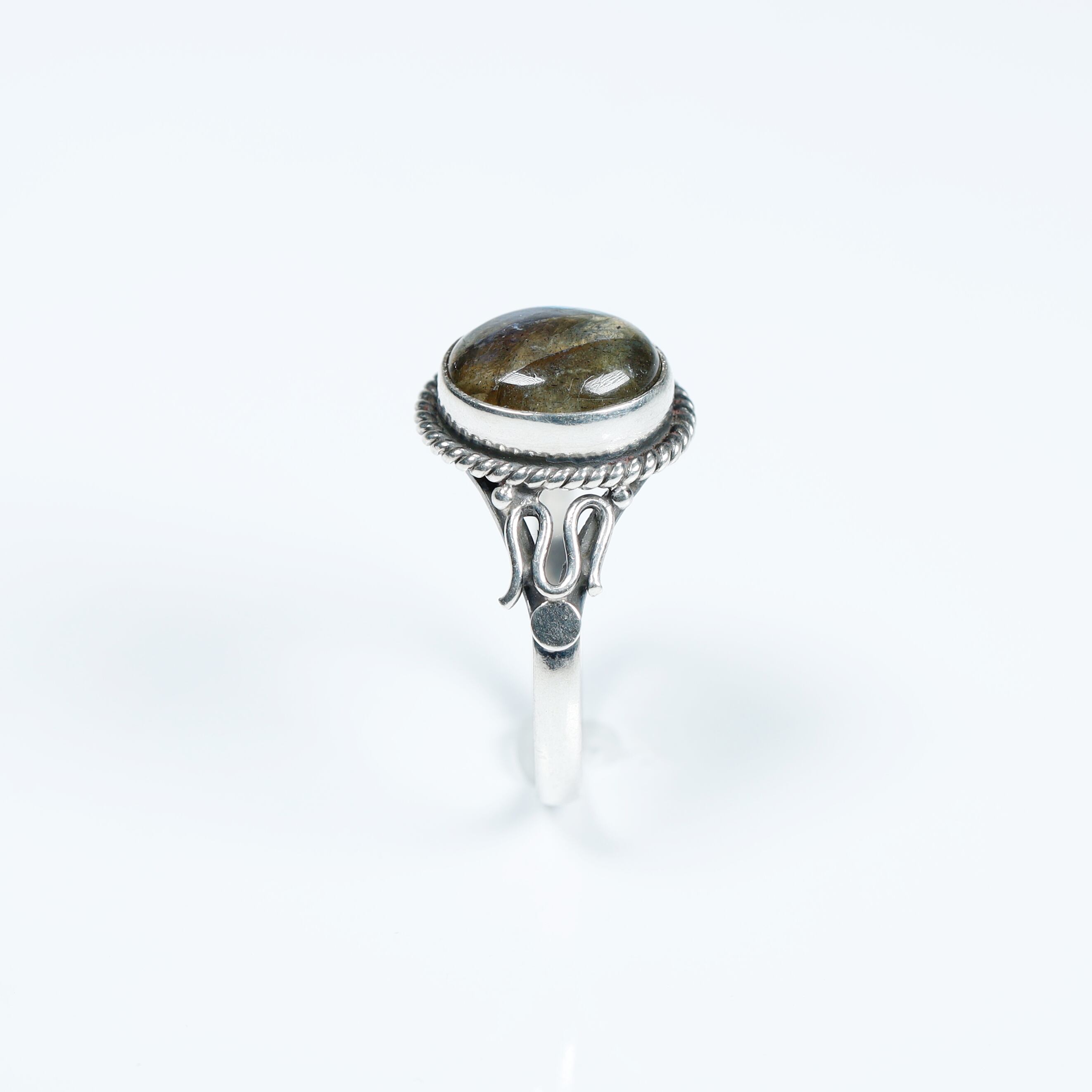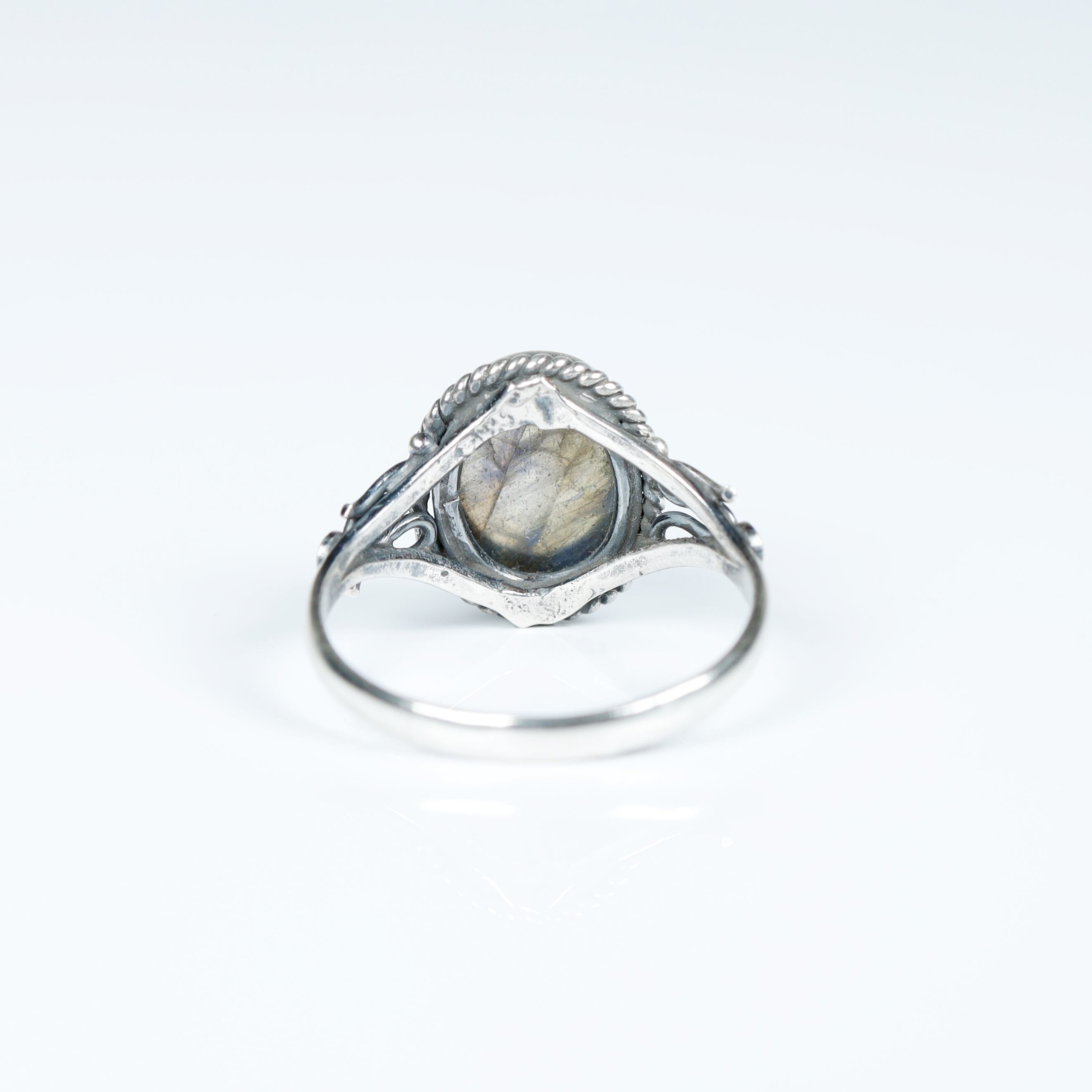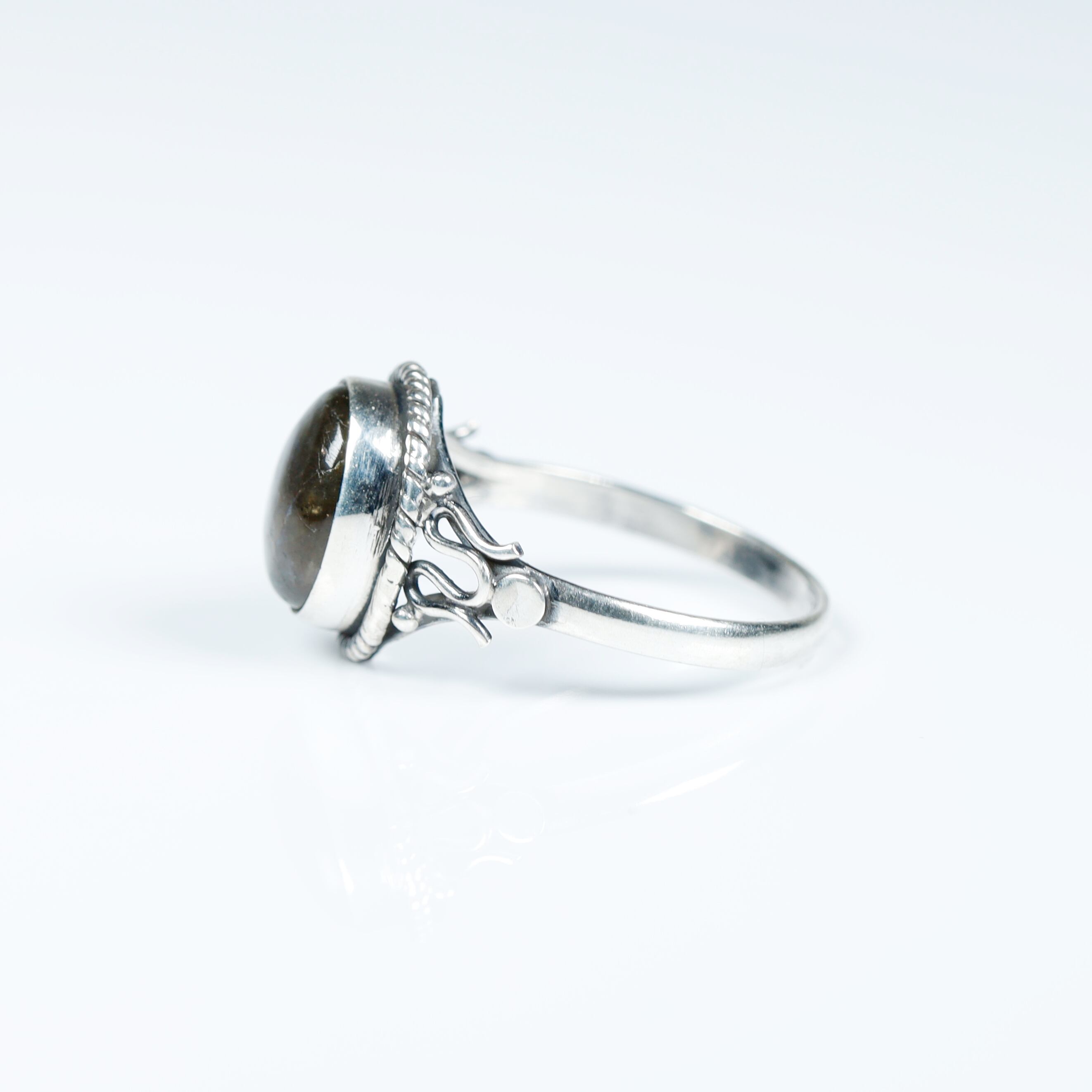 そんなラブラドライトをセットしたクールでジェンダーレスなリングです。