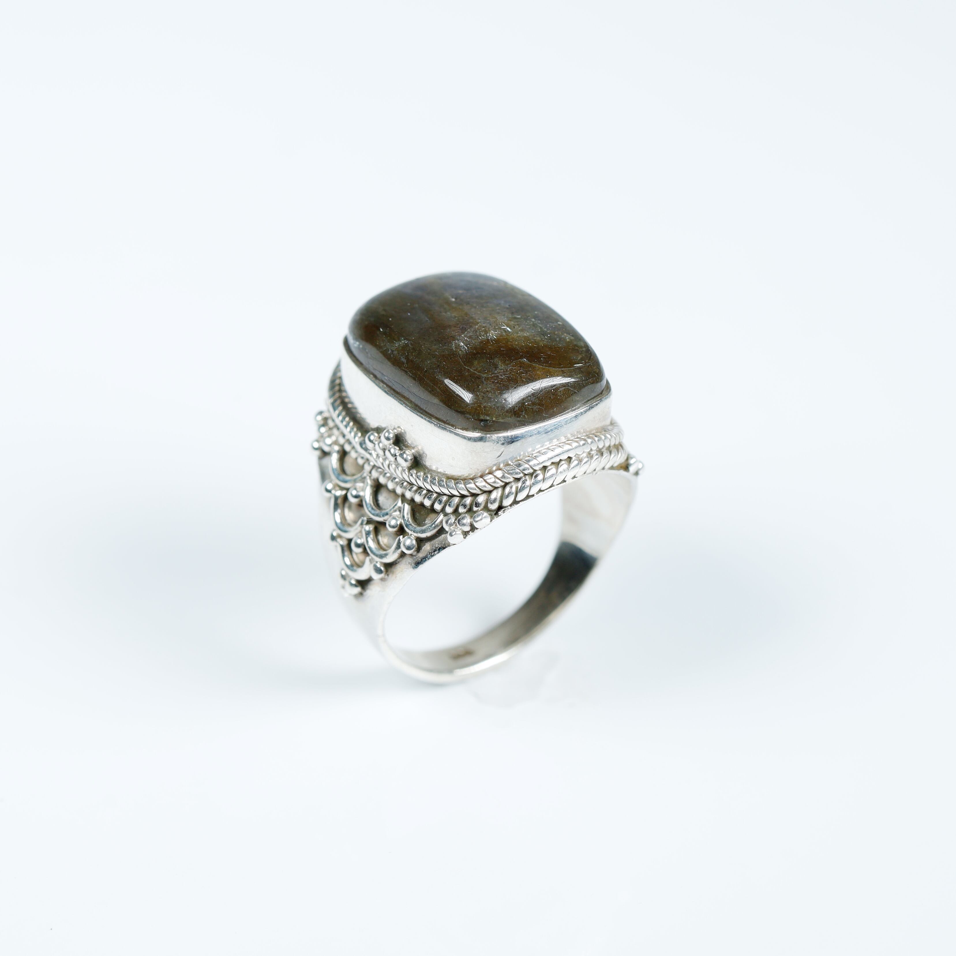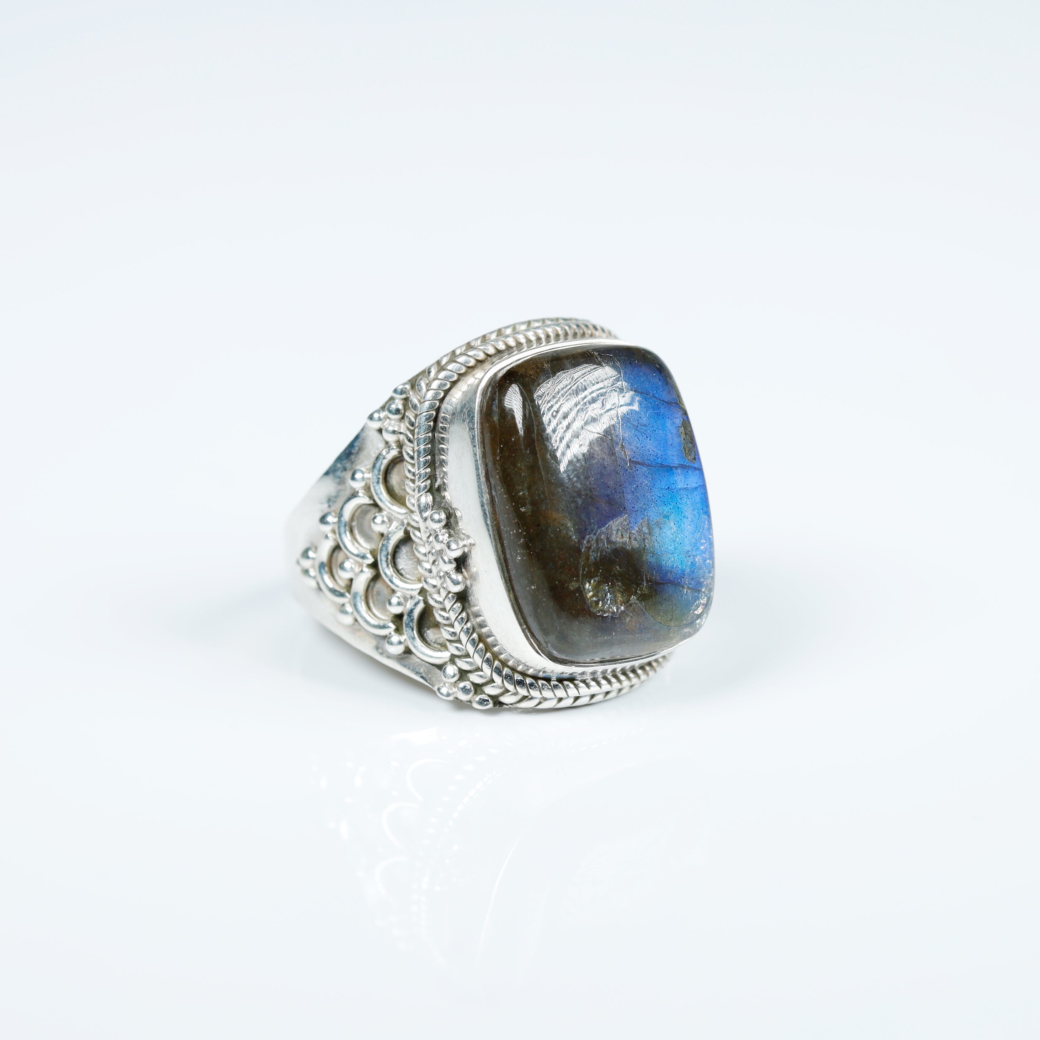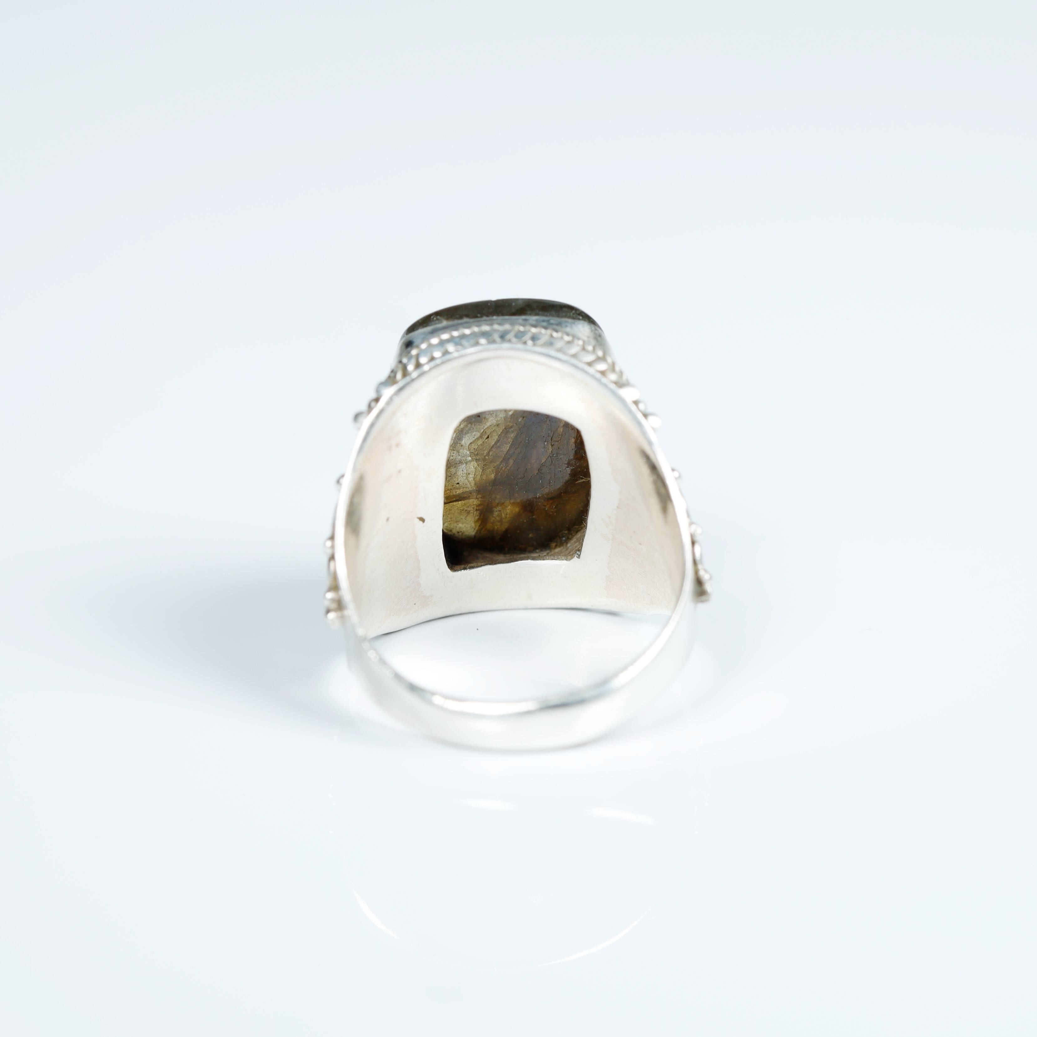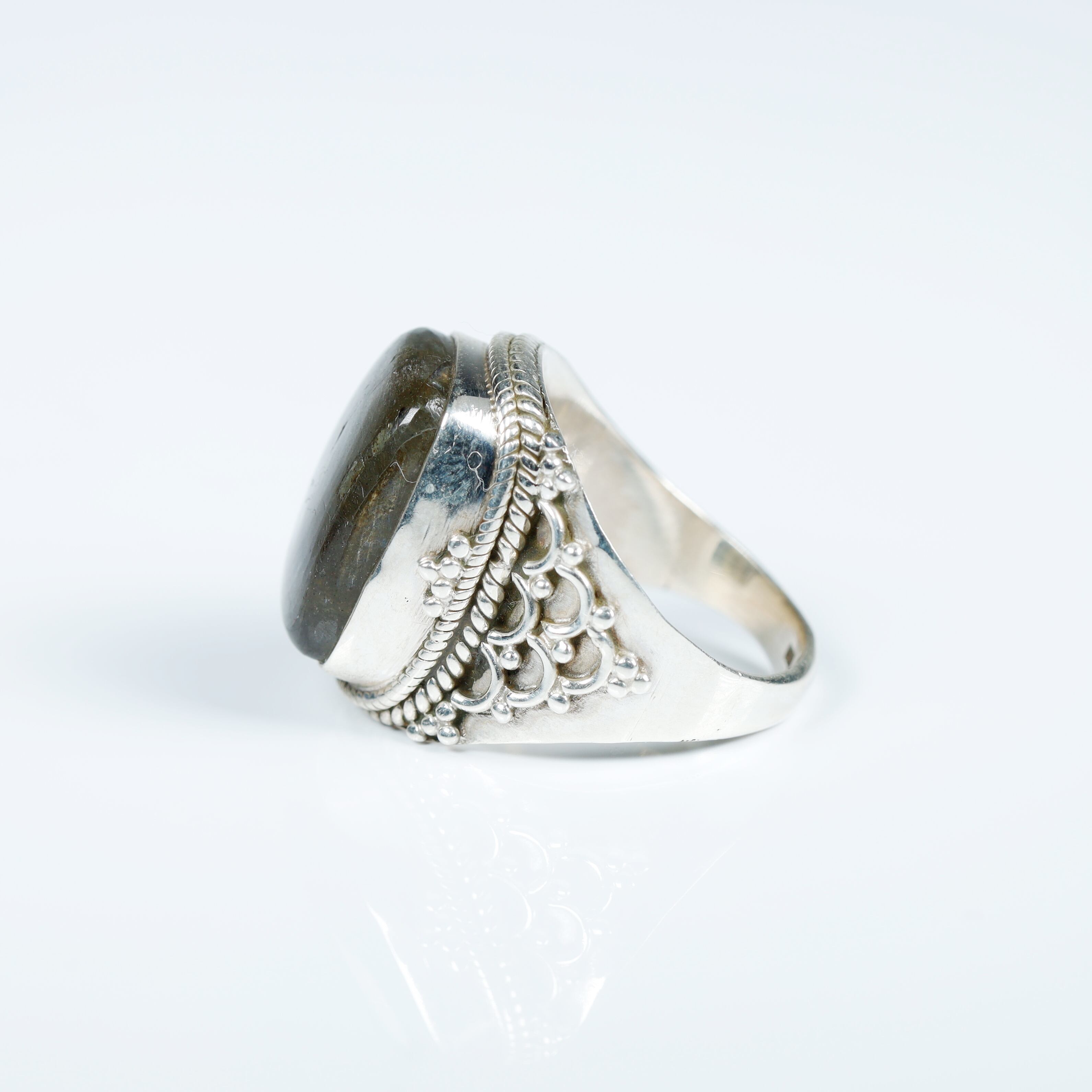 そんなラブラドライトをセットしたクールでジェンダーレスなリングです。
