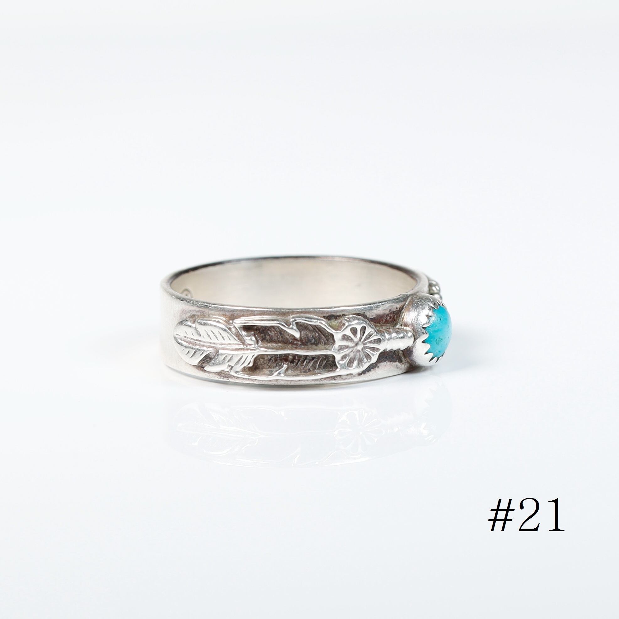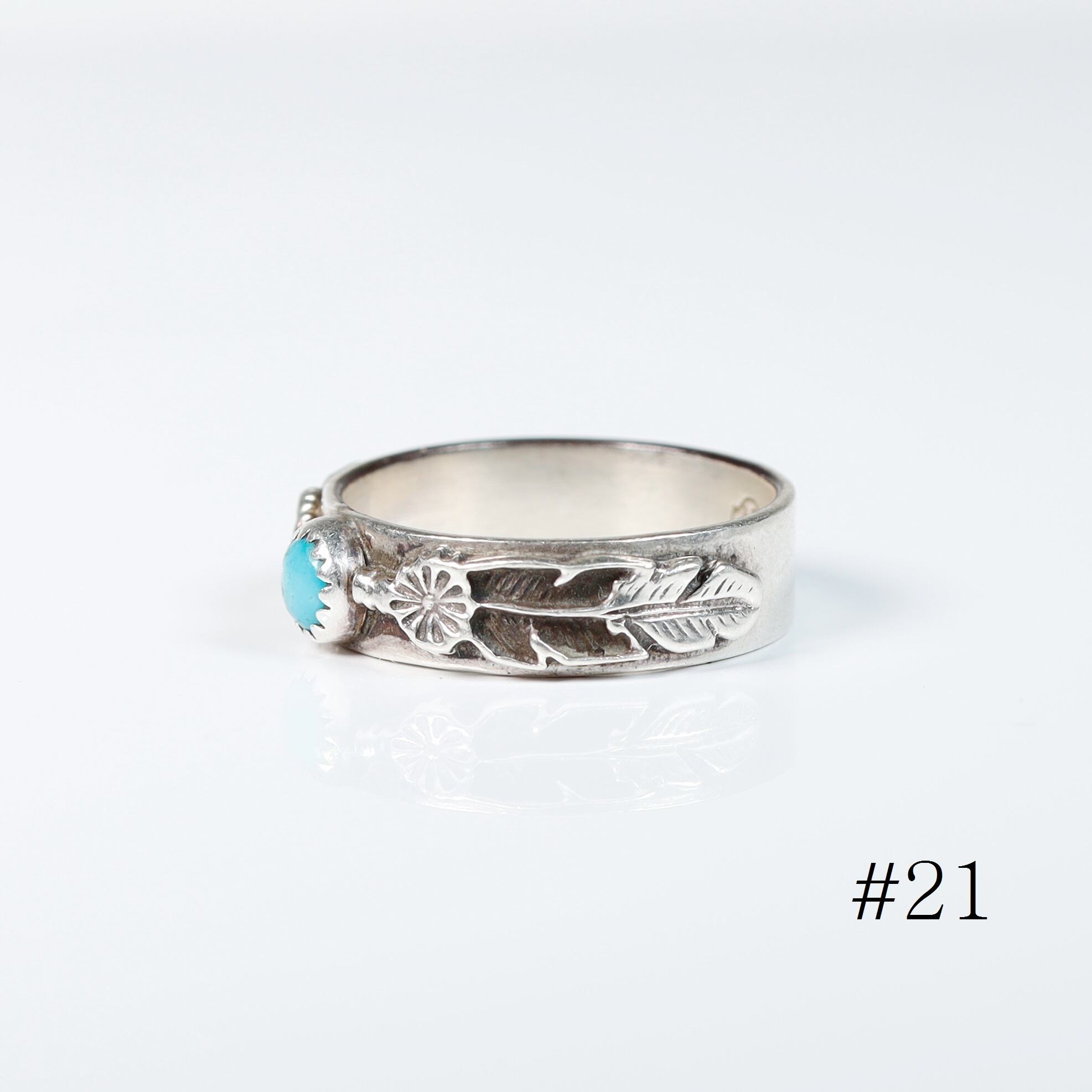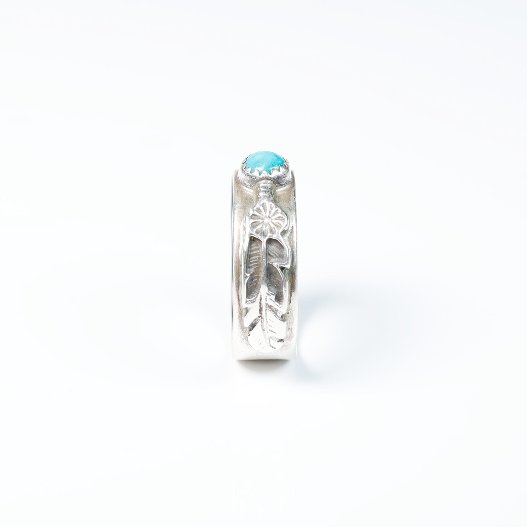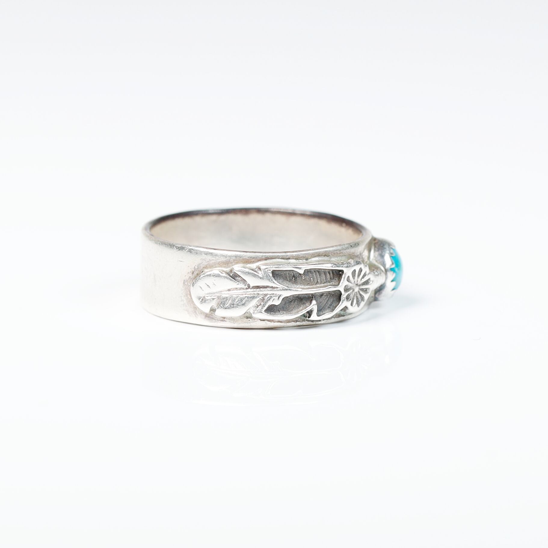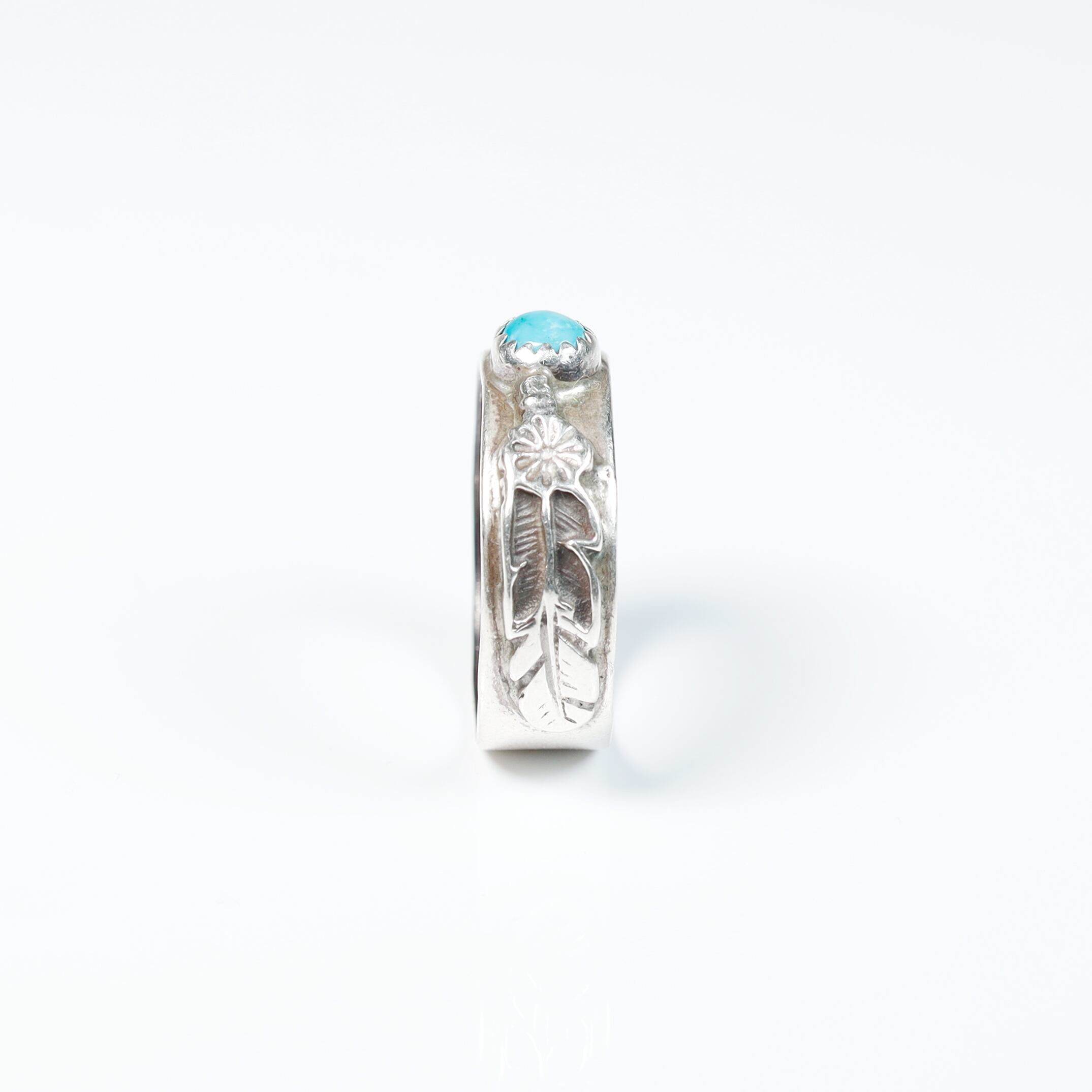 フェザーモチーフのシルバーリングにターコイズをセットした飽きの来ないデザインです。