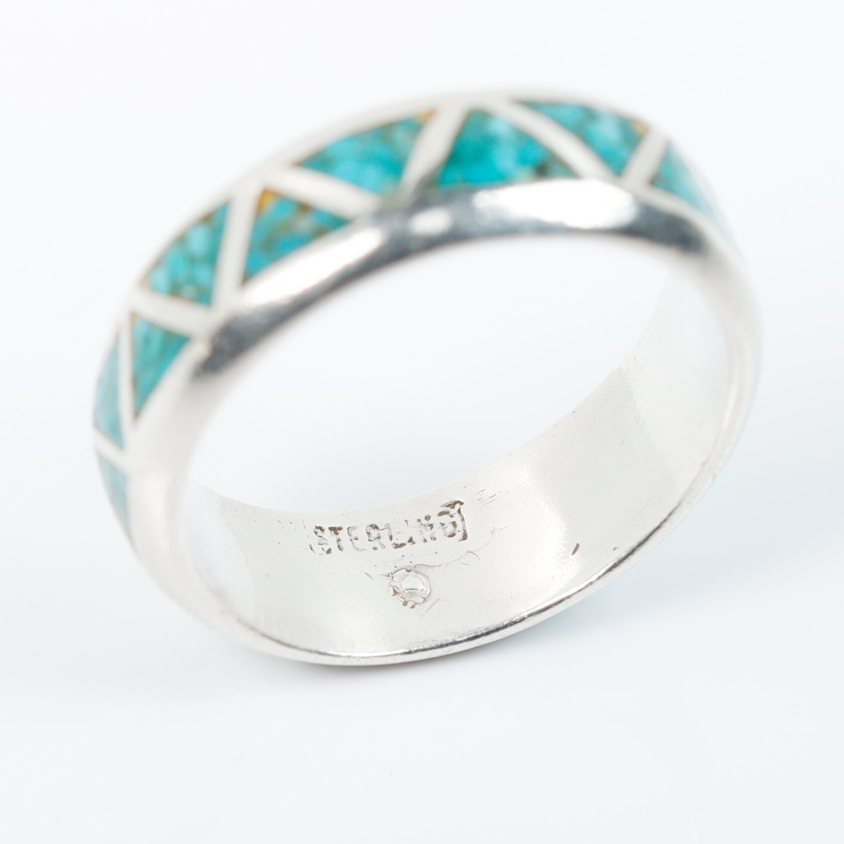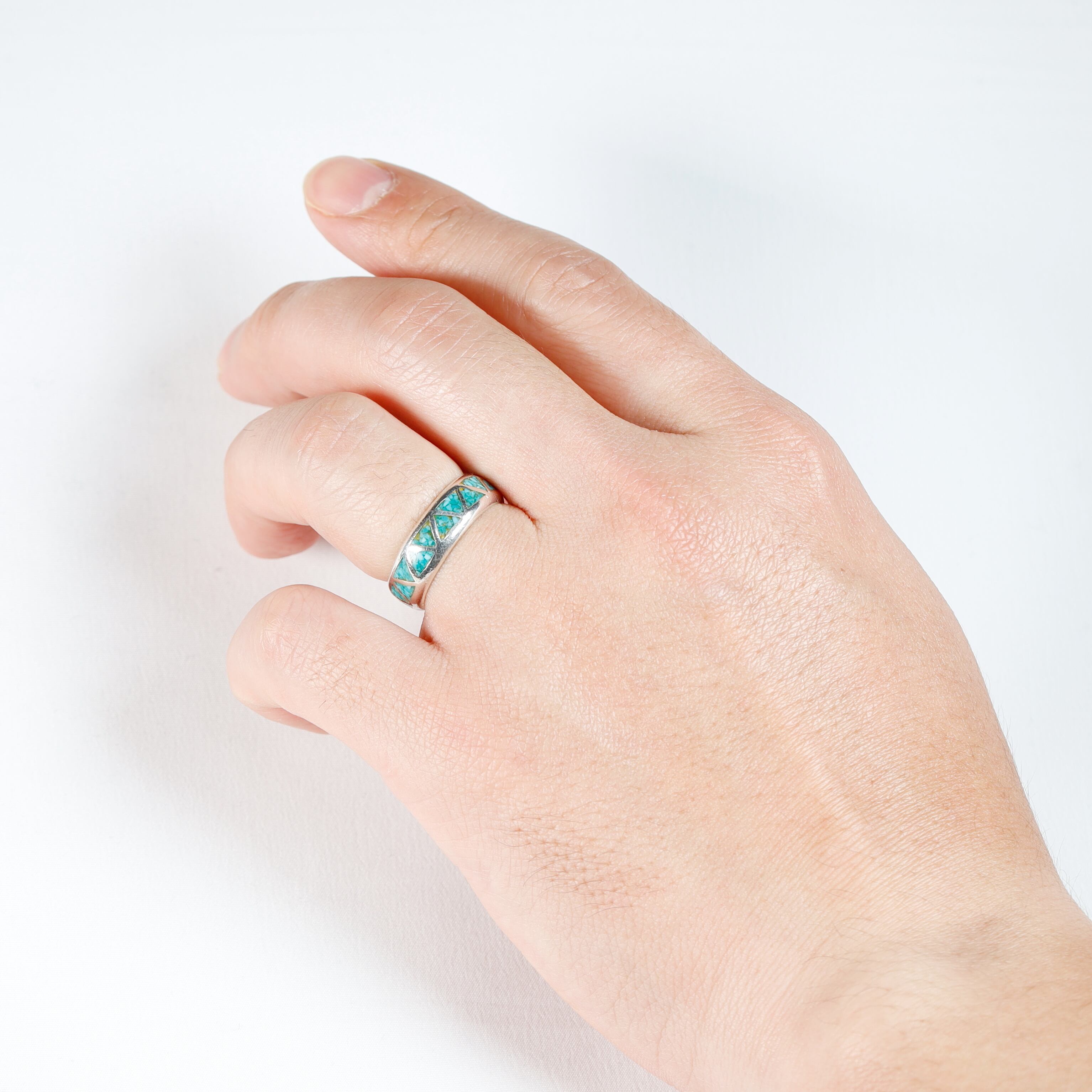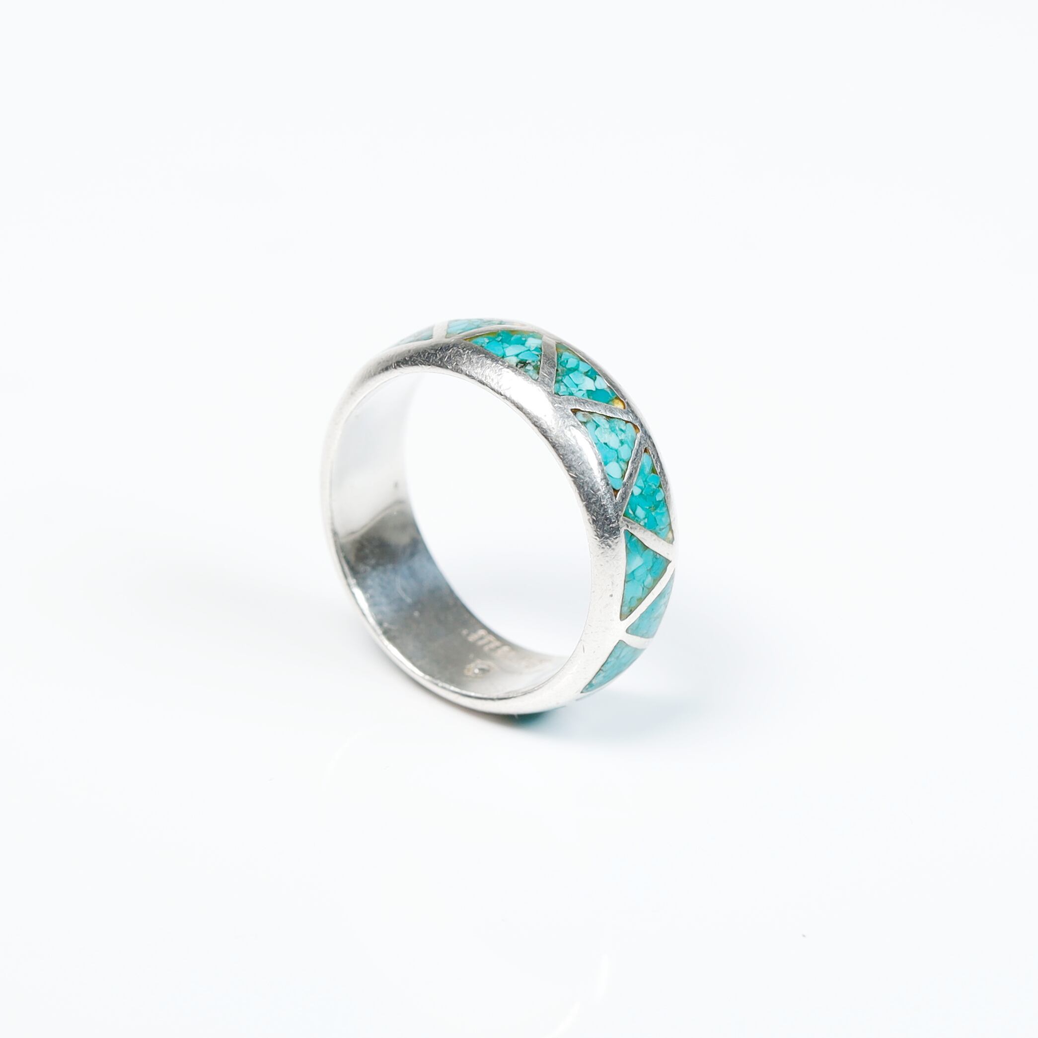 瑞々しいクラッシュターコイズを敷き詰めたシルバーリング。