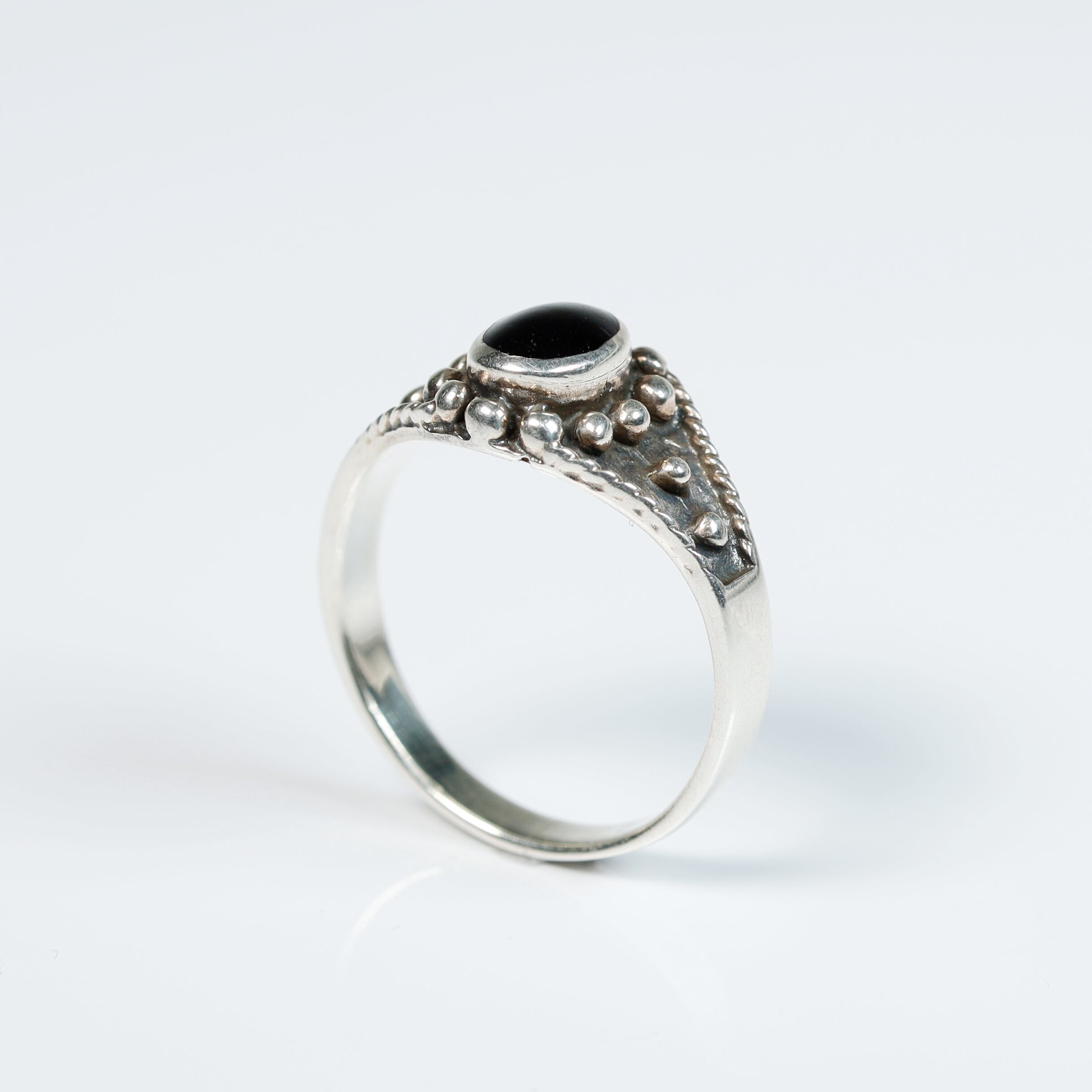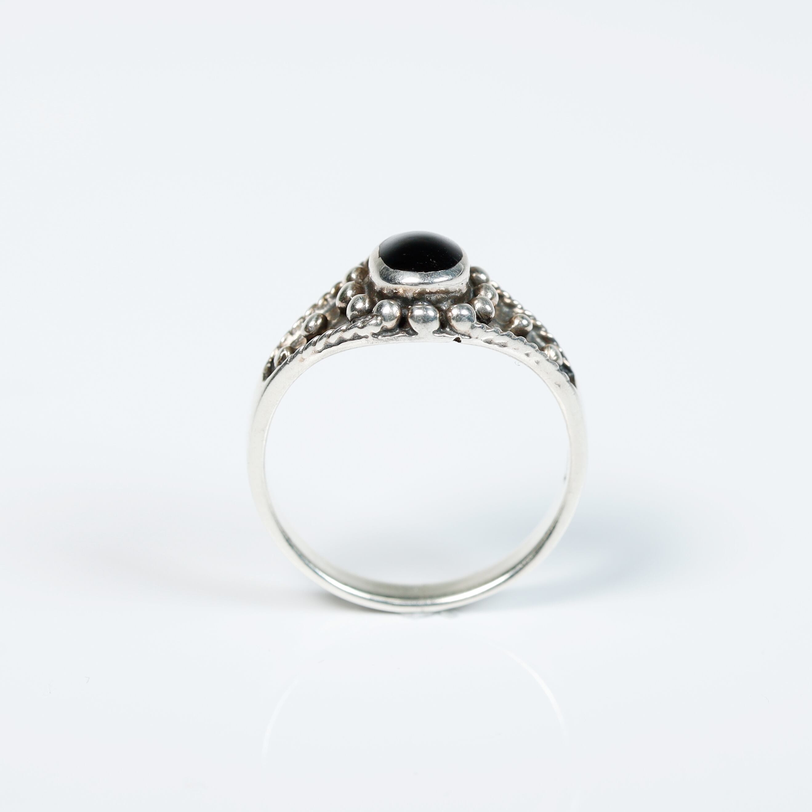 スタッズが施されたシルバーリングにセッティングされたオニキス。