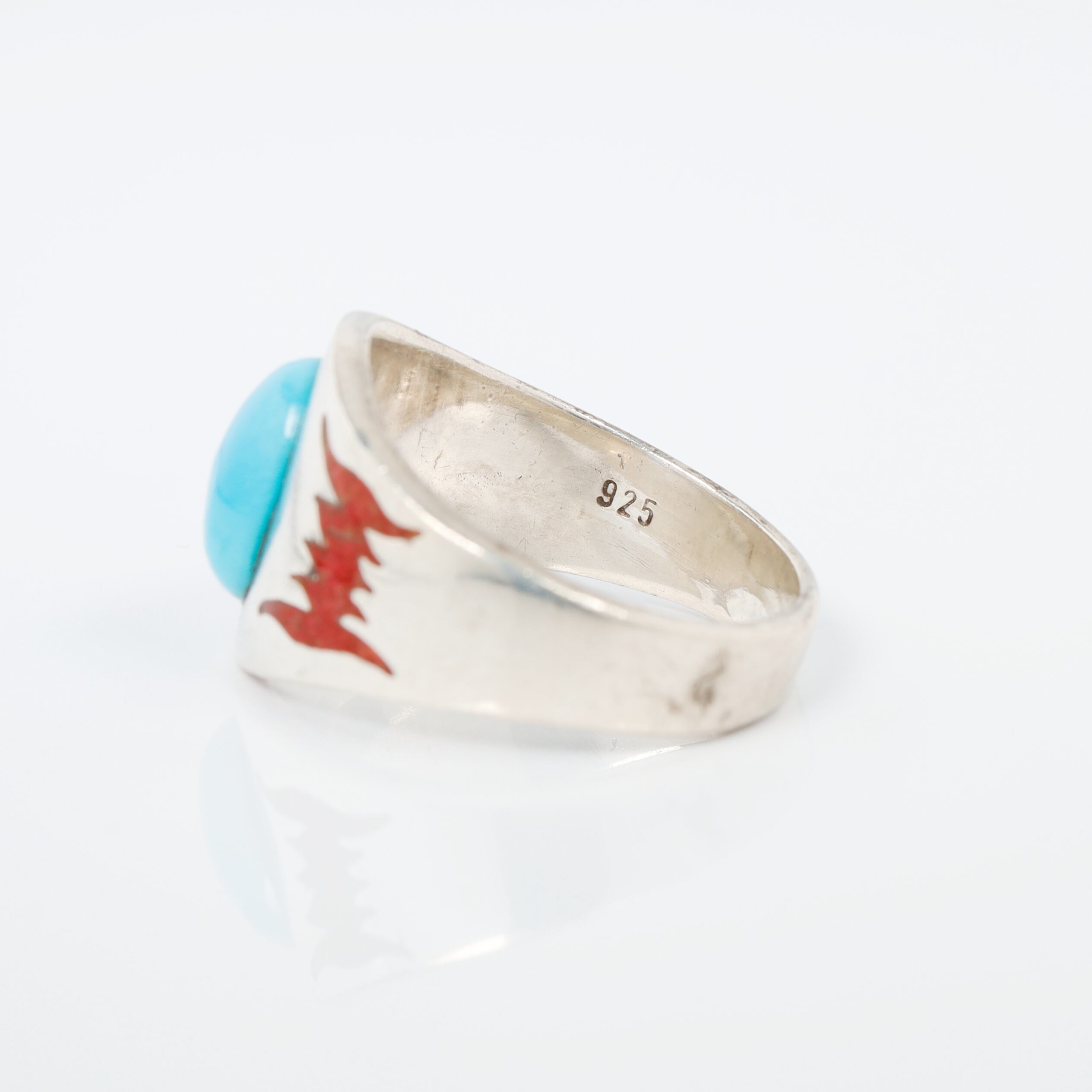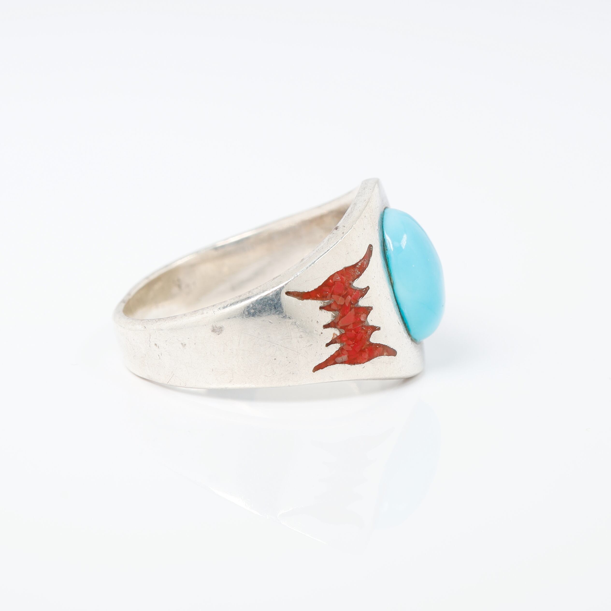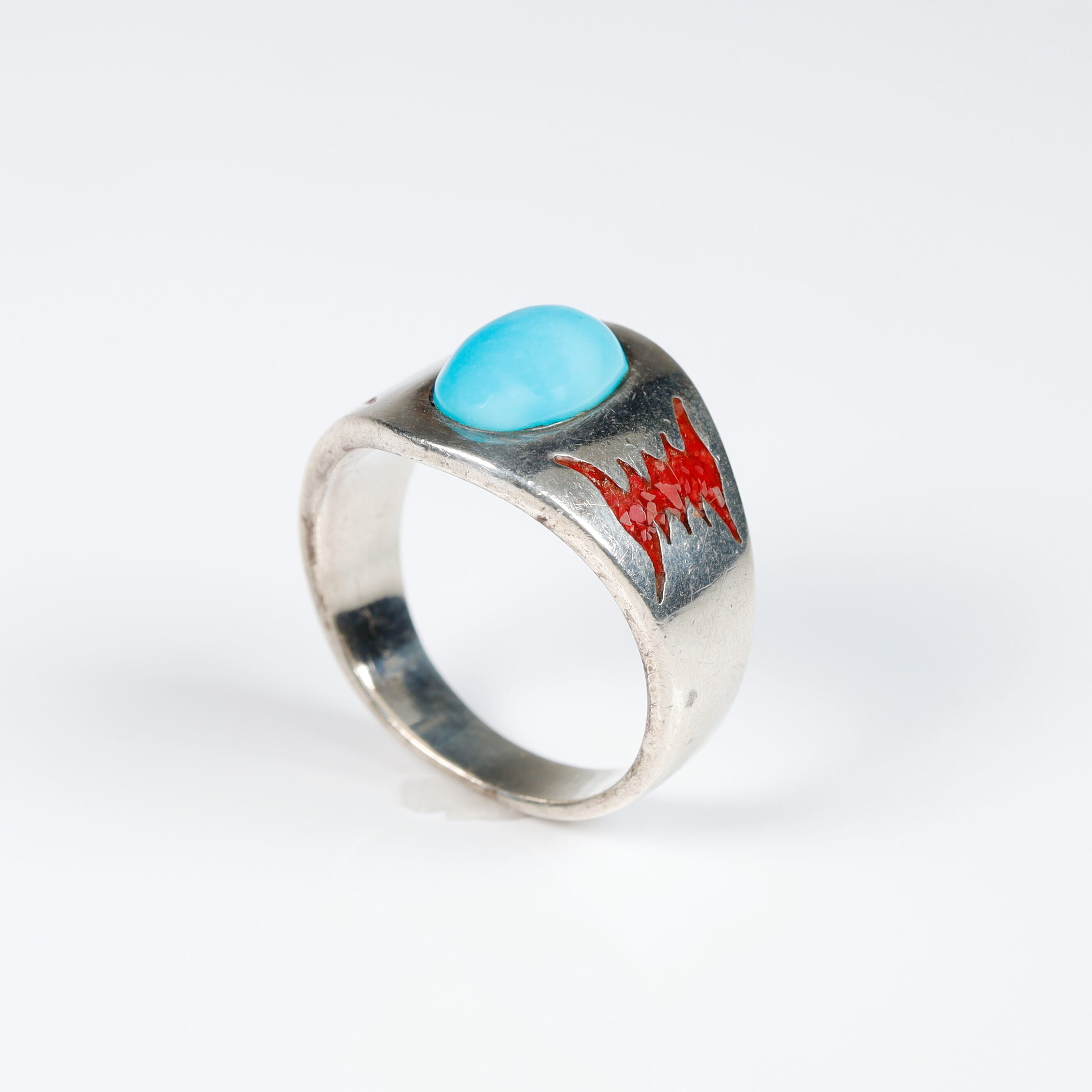 ターコイズとコーラル(珊瑚)のインレイを組み合わせたインディアンジュエリー。