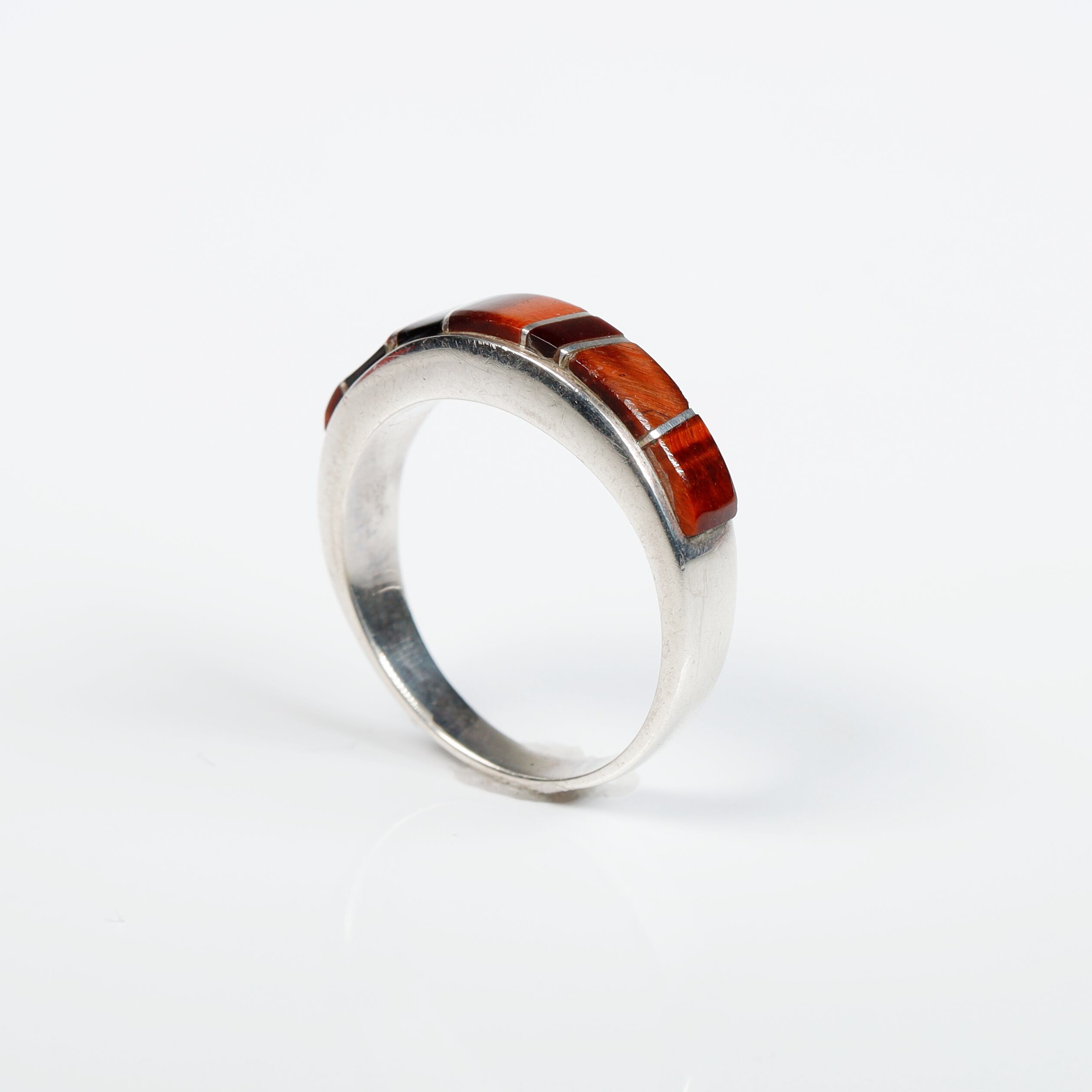 赤みの強いタイガーアイとオニキスを使用したインレイシルバーリングです。