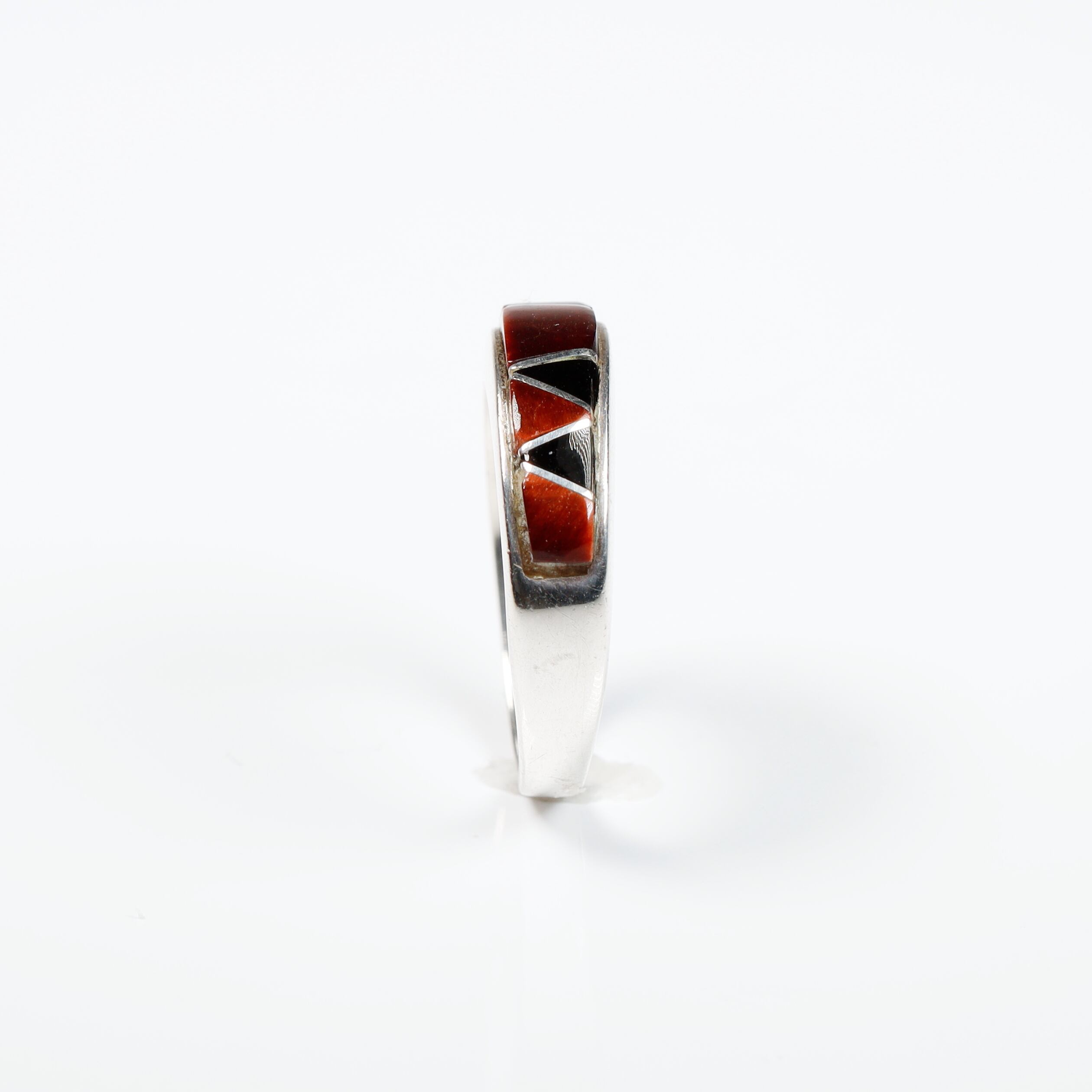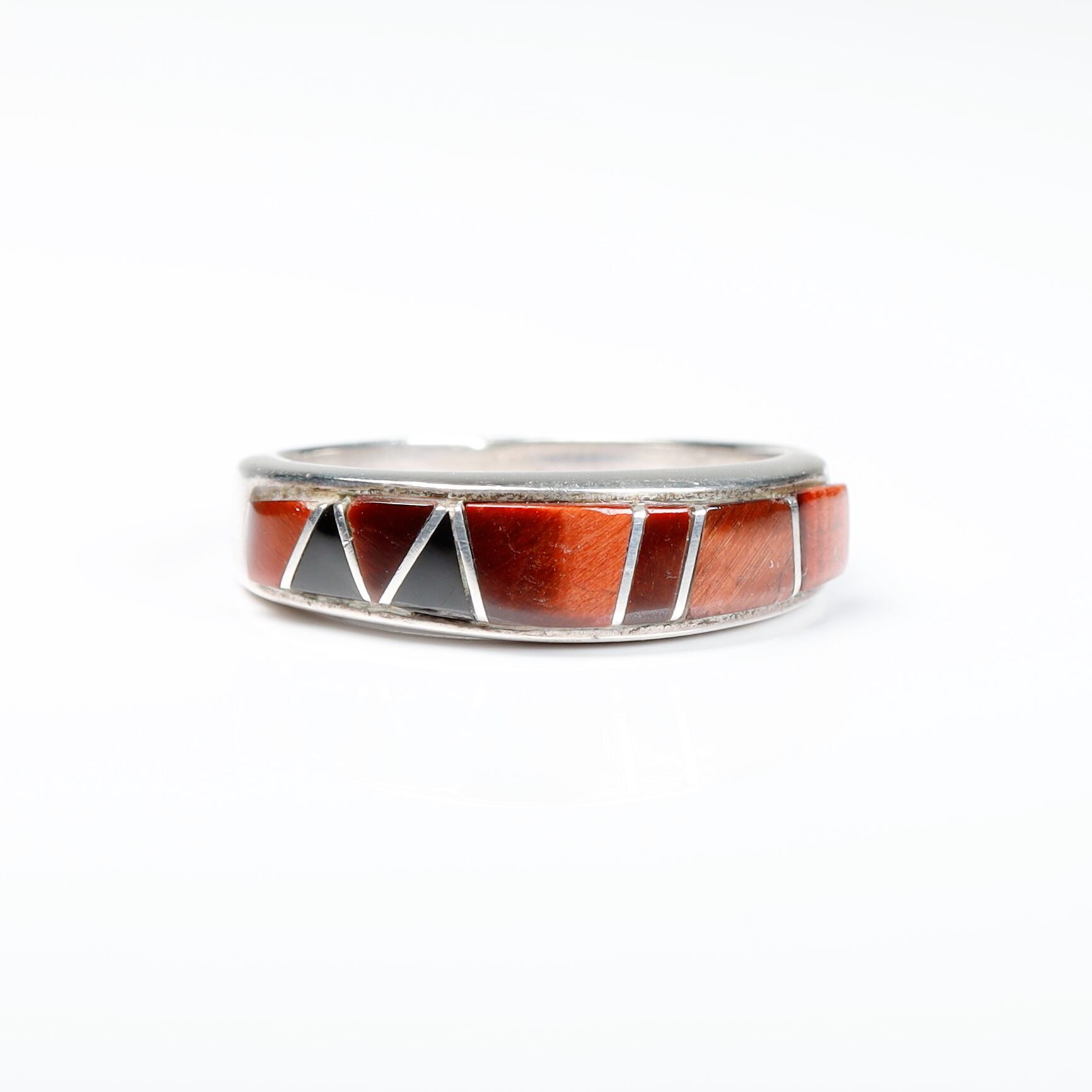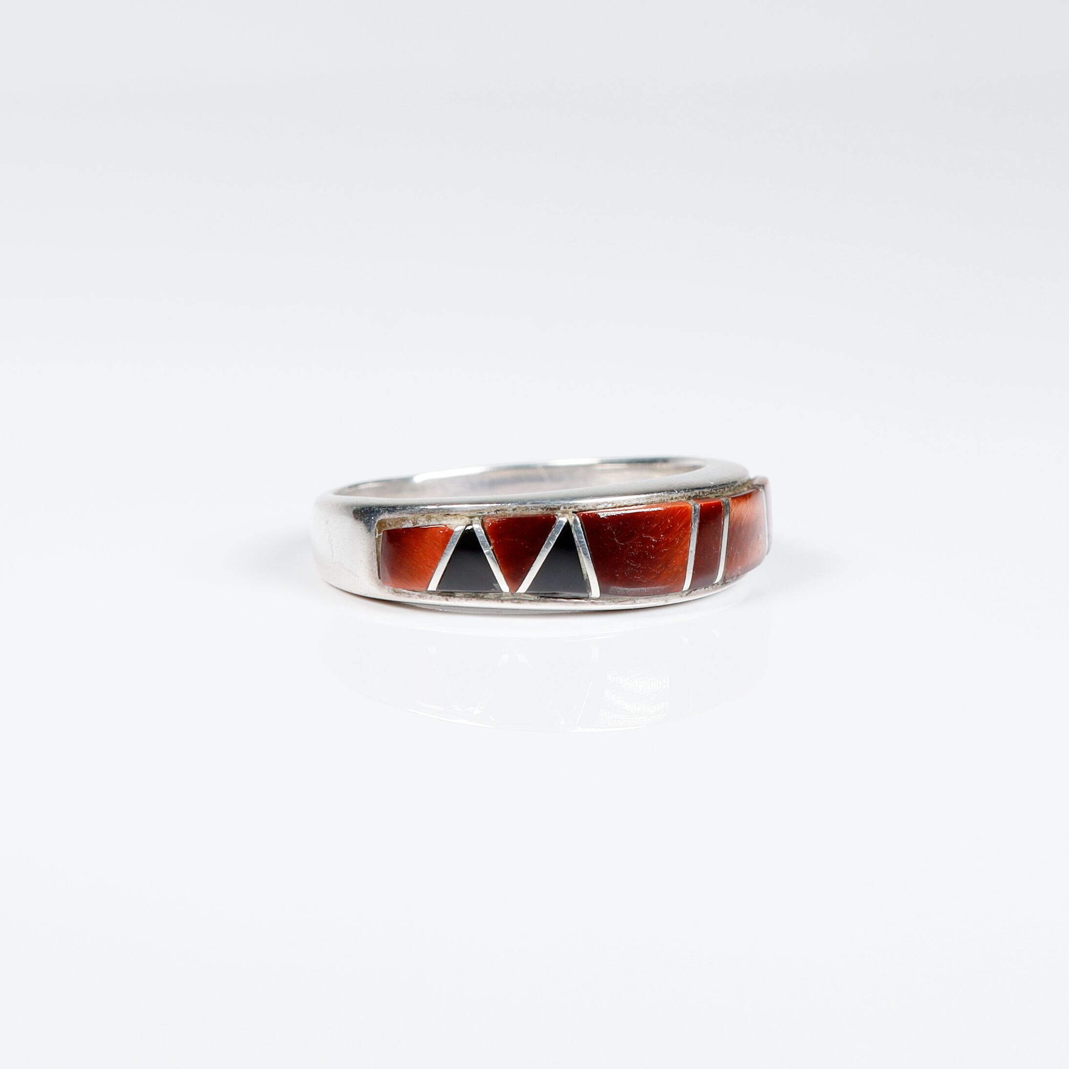 Zuni / Redtigereye × OnyxInlay Silver Ring #14 (used)