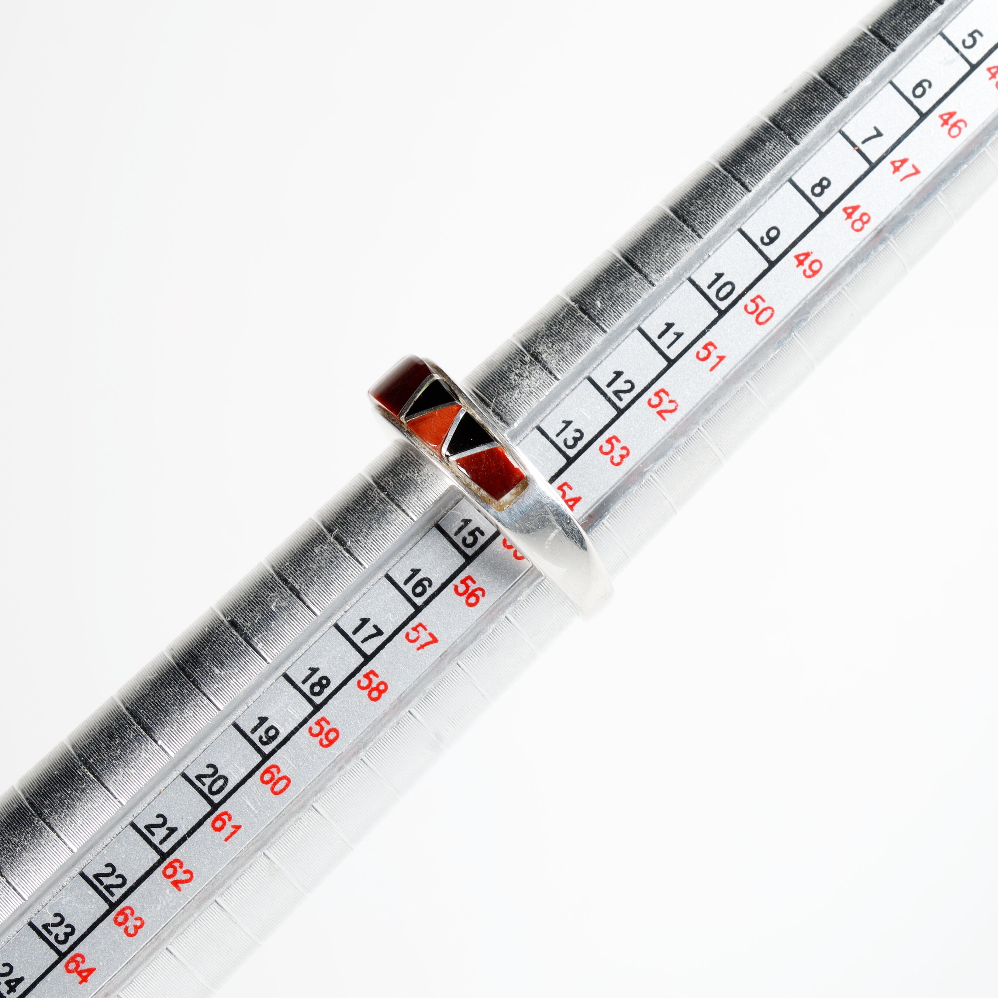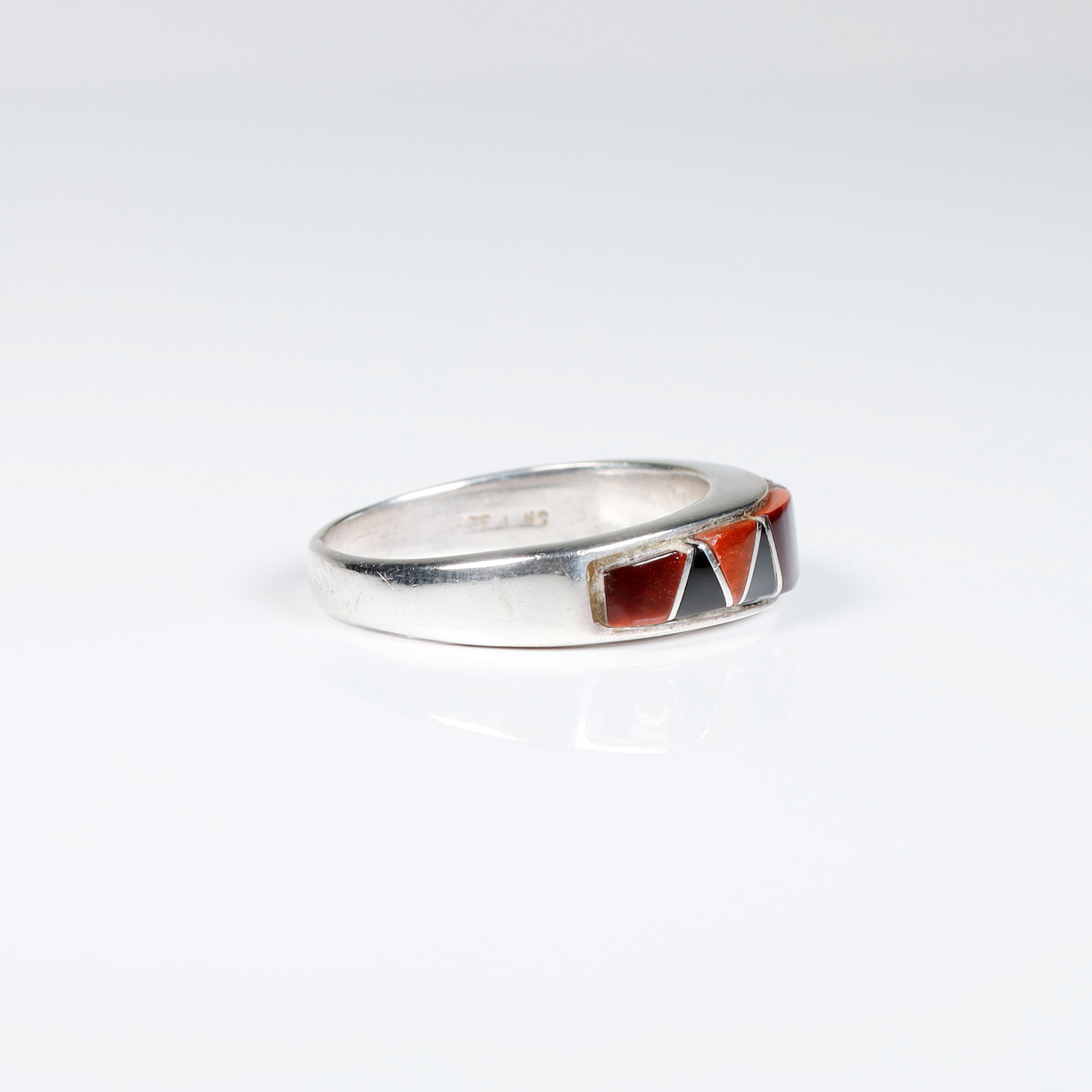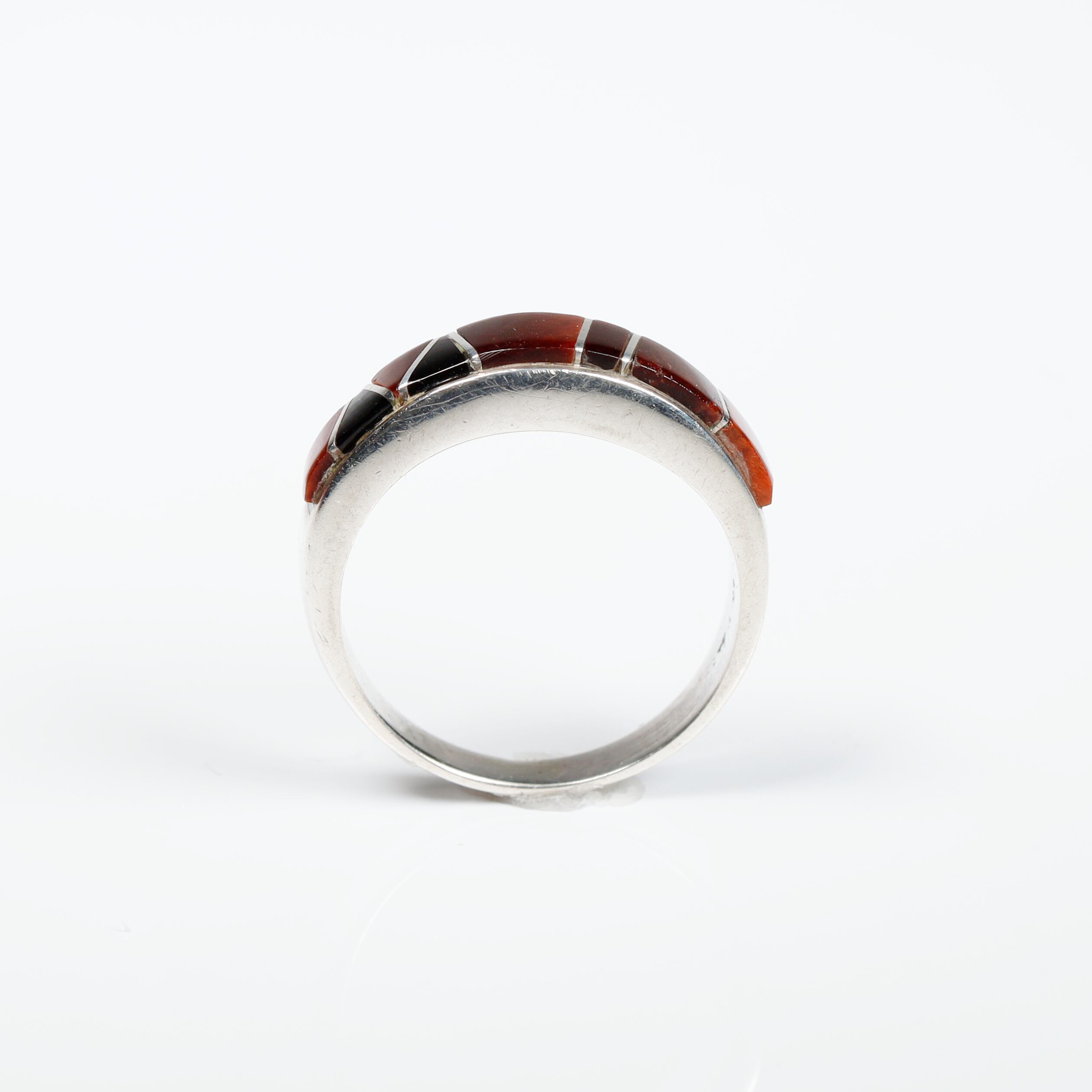 Zuni / Redtigereye × OnyxInlay Silver Ring #14 (used)