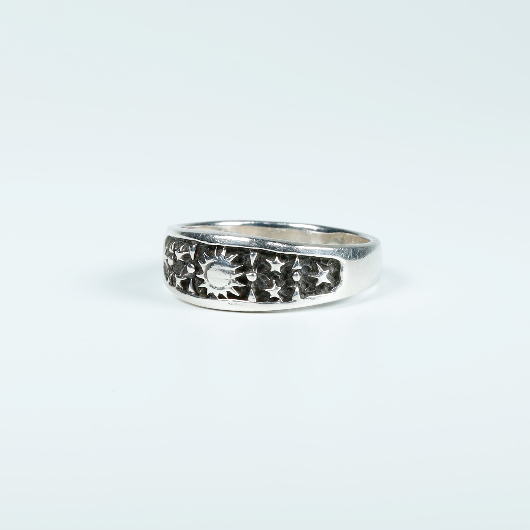 シンプルなシルバーリングにハンドメイドの彫刻が施されたワイルドなヴィンテージリングです。