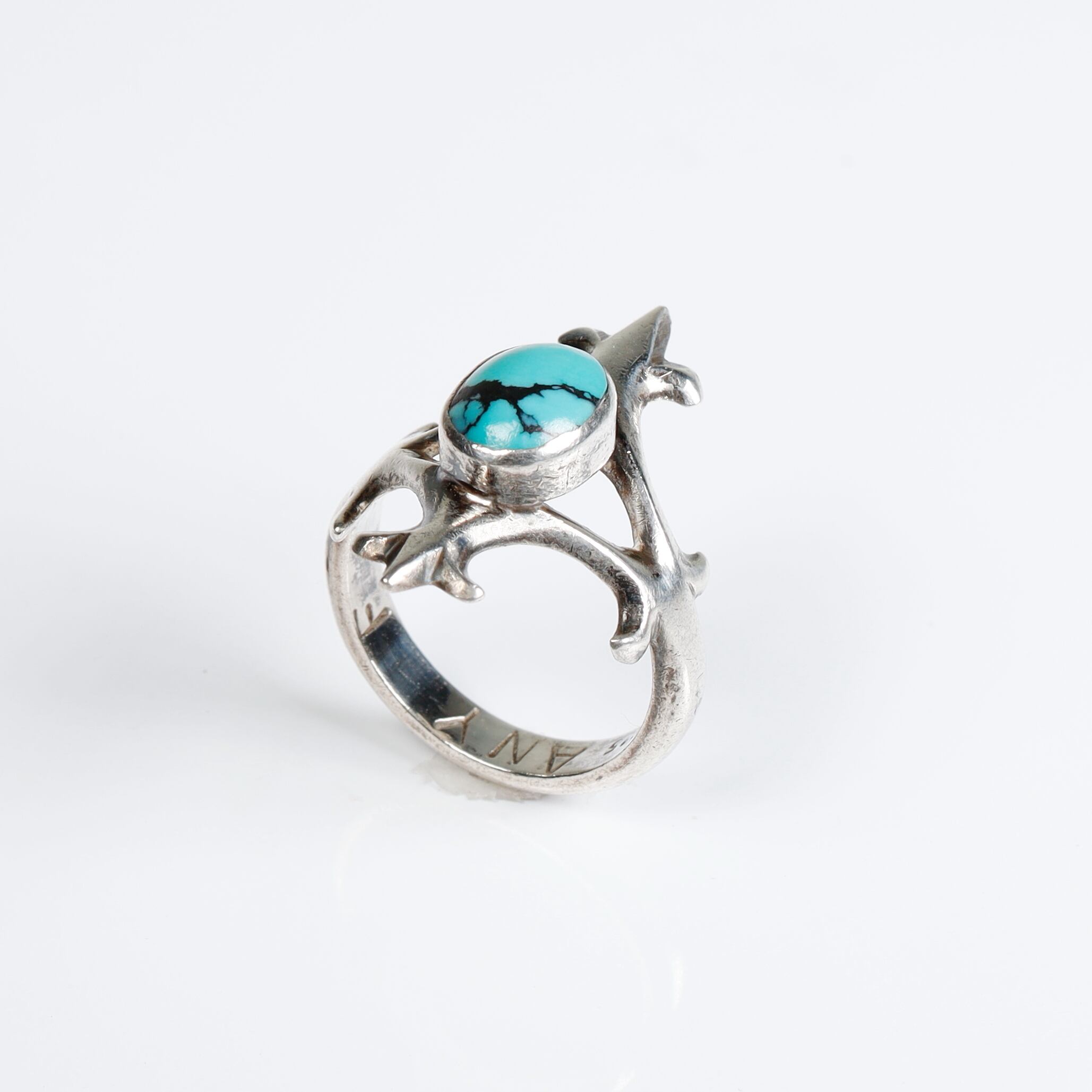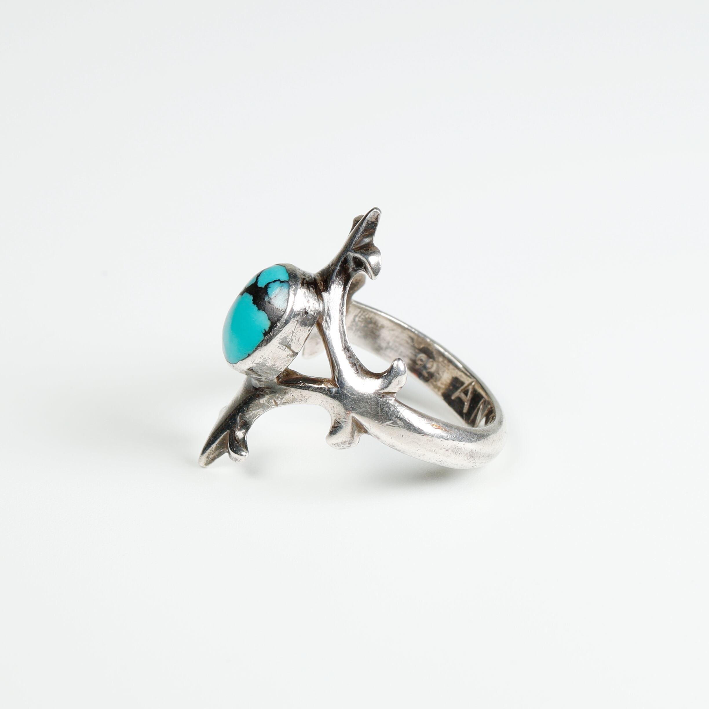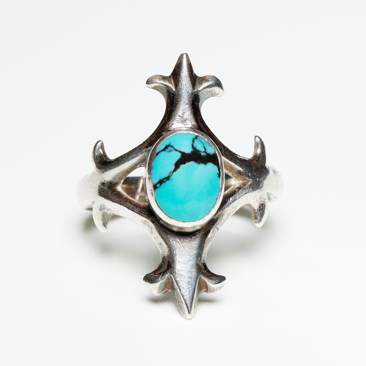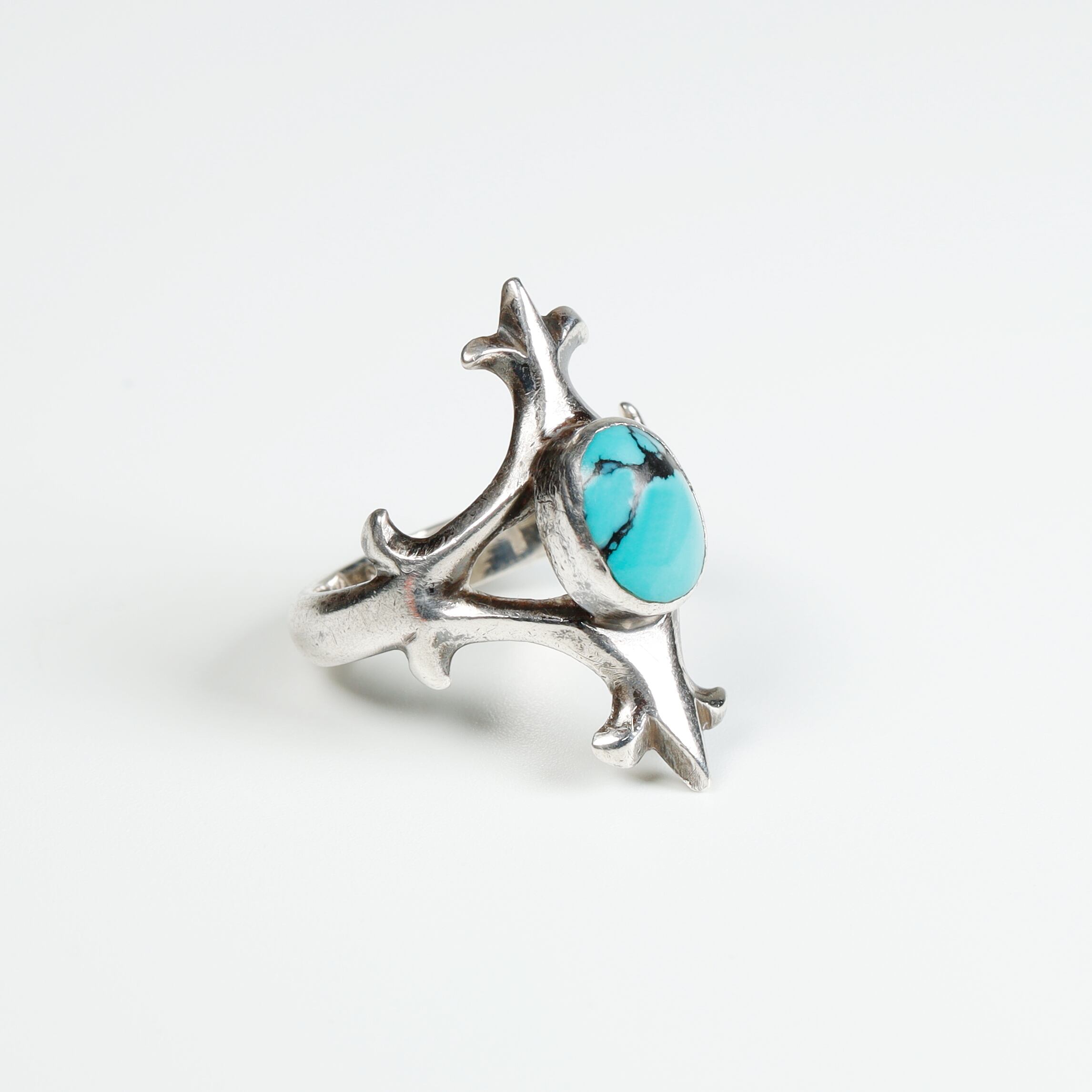 あまり見かけない刺々しいデザインがクールなターコイズシルバーリングです。