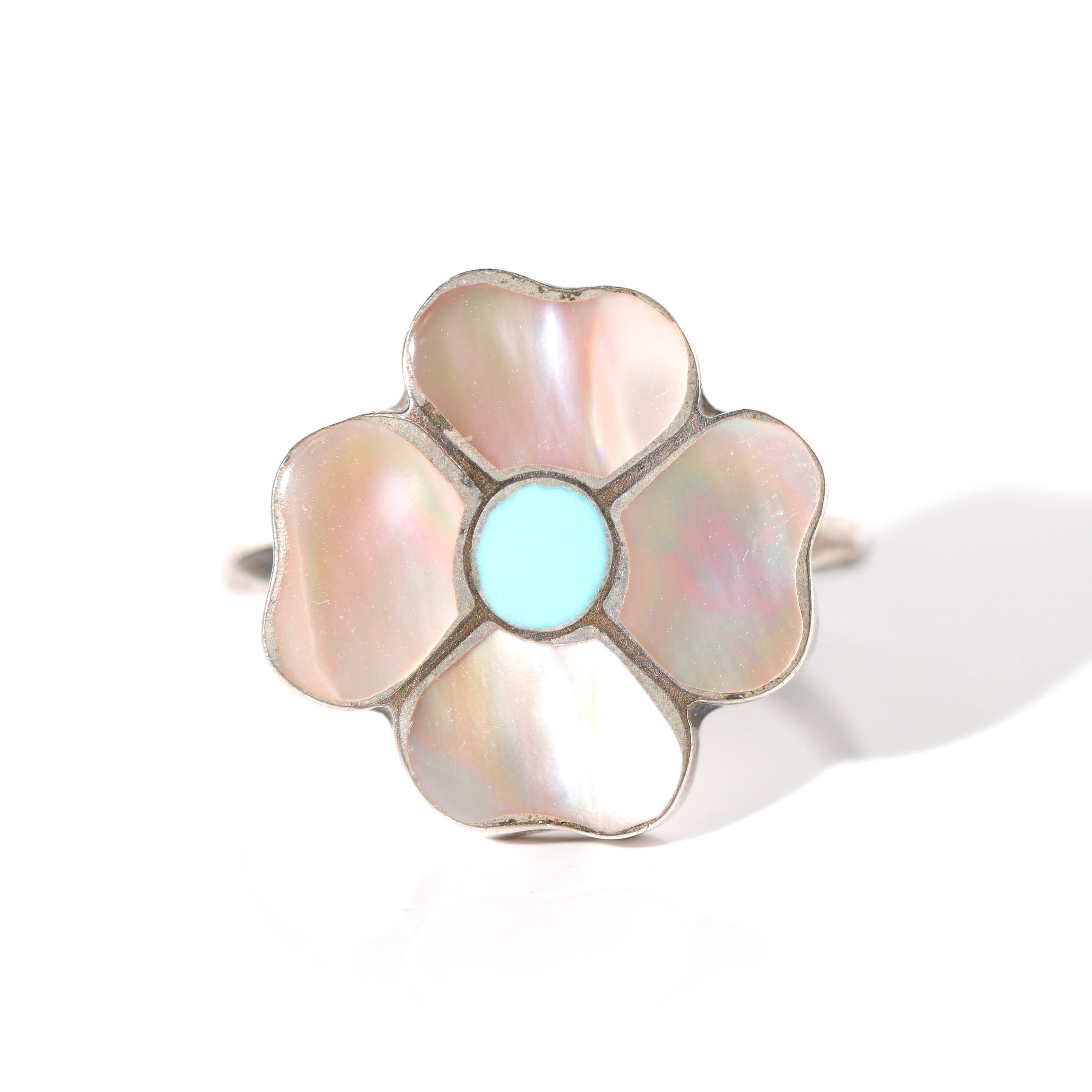 美しいシェルをはめ込み花を模った可愛らしいリングです。