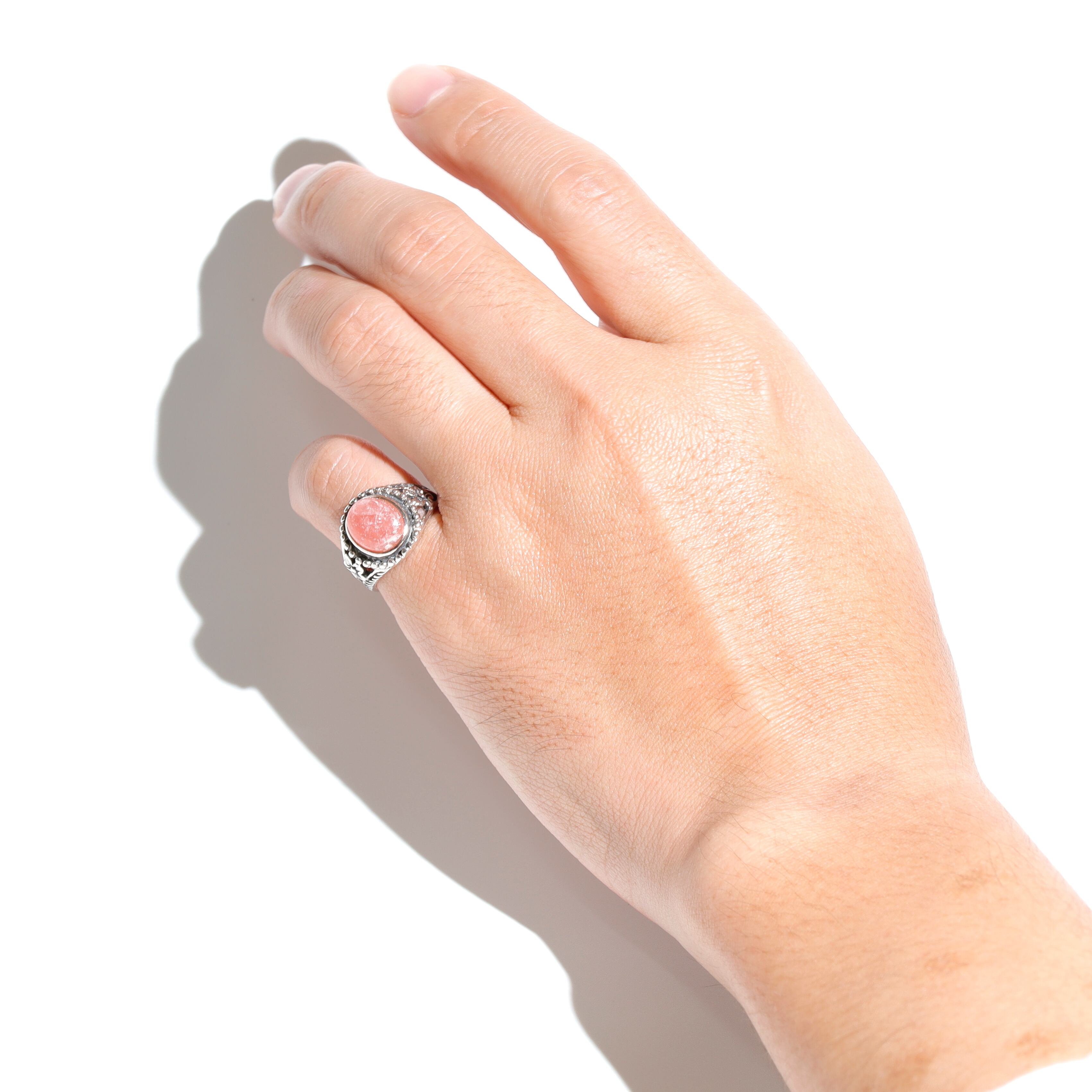 淡いピンクが特徴のインカローズをセッティングしたシルバーリング。