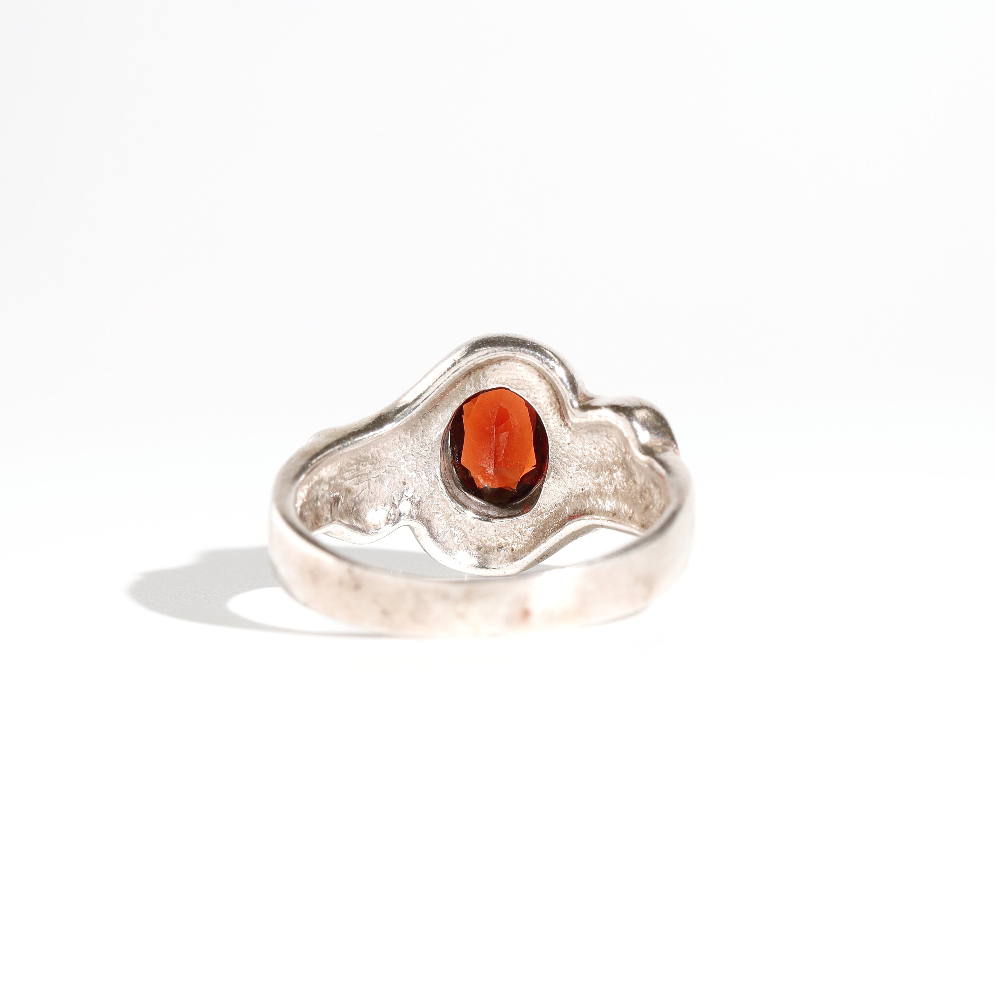 ガーネットとマーカサイトをあしらったシルバーリング。