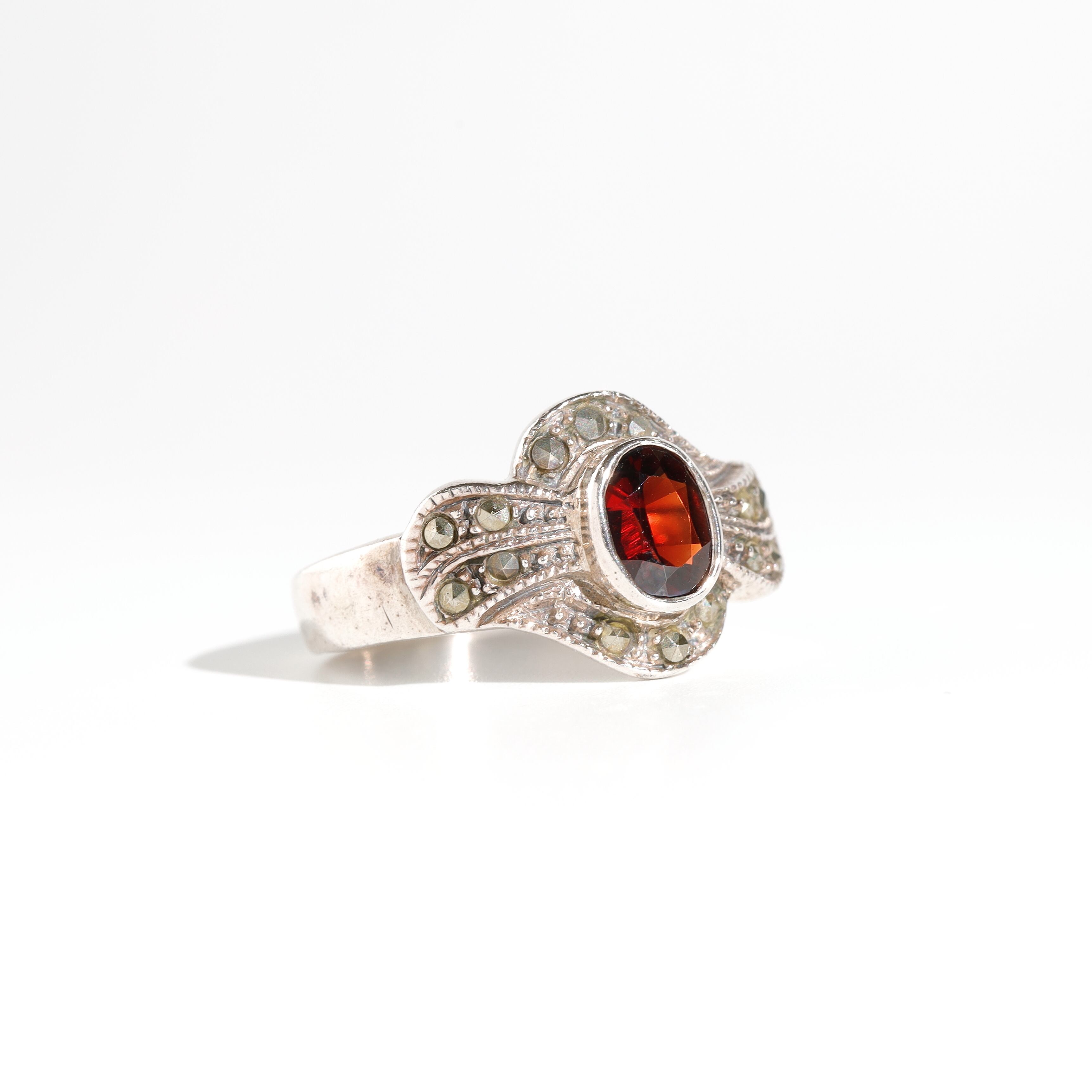 Garnet × Marcasite Silver Ring #14 (used)