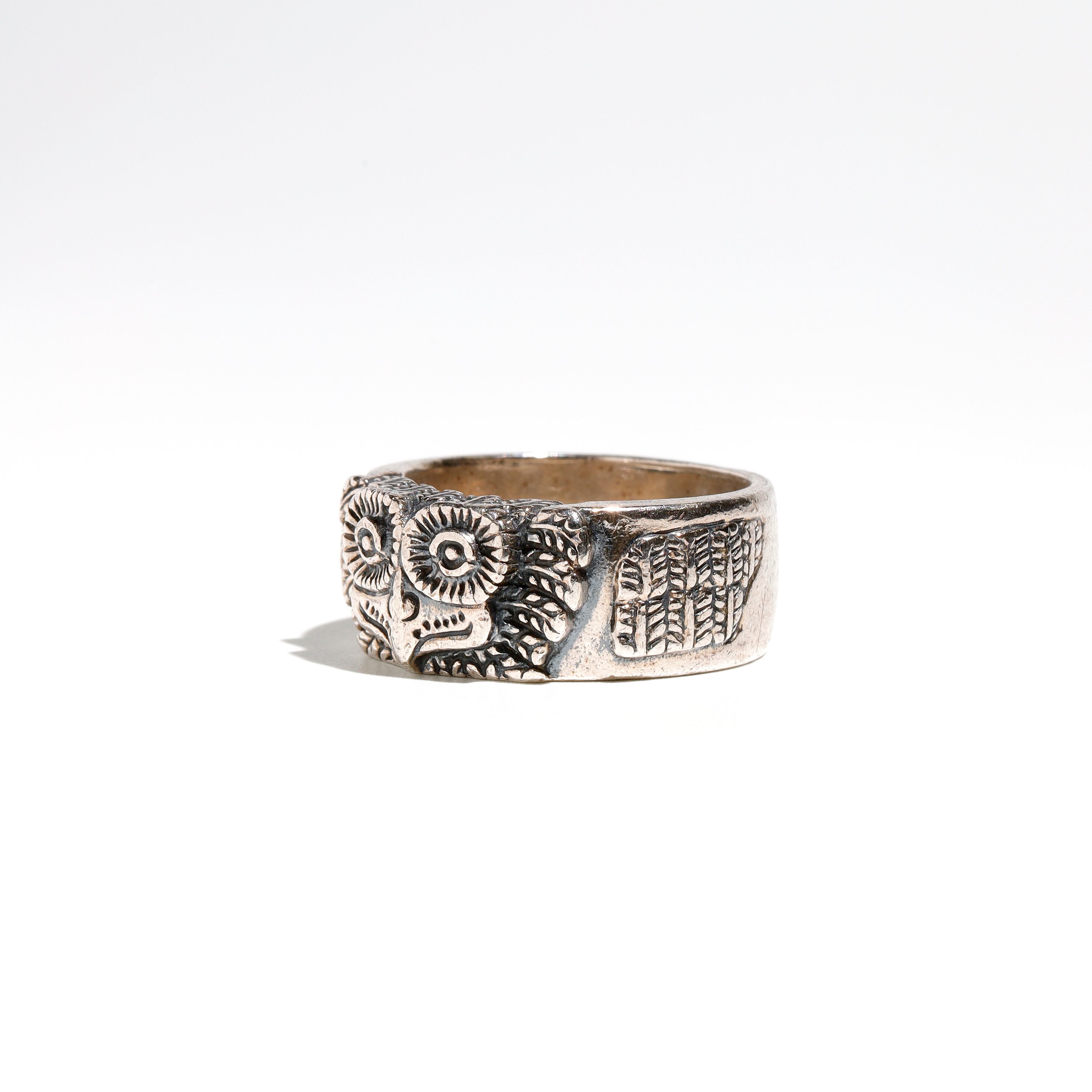 ずっしりとしたフクロウモチーフのシルバーリング。