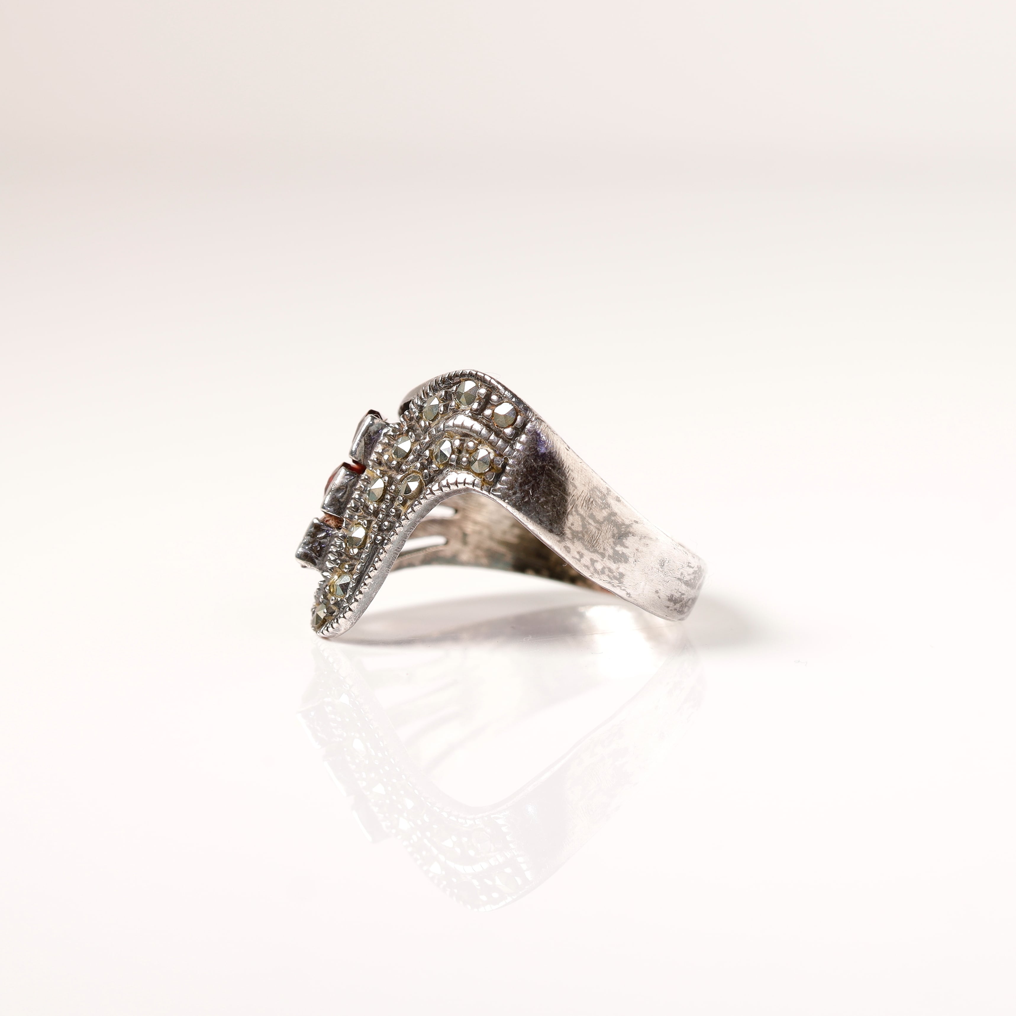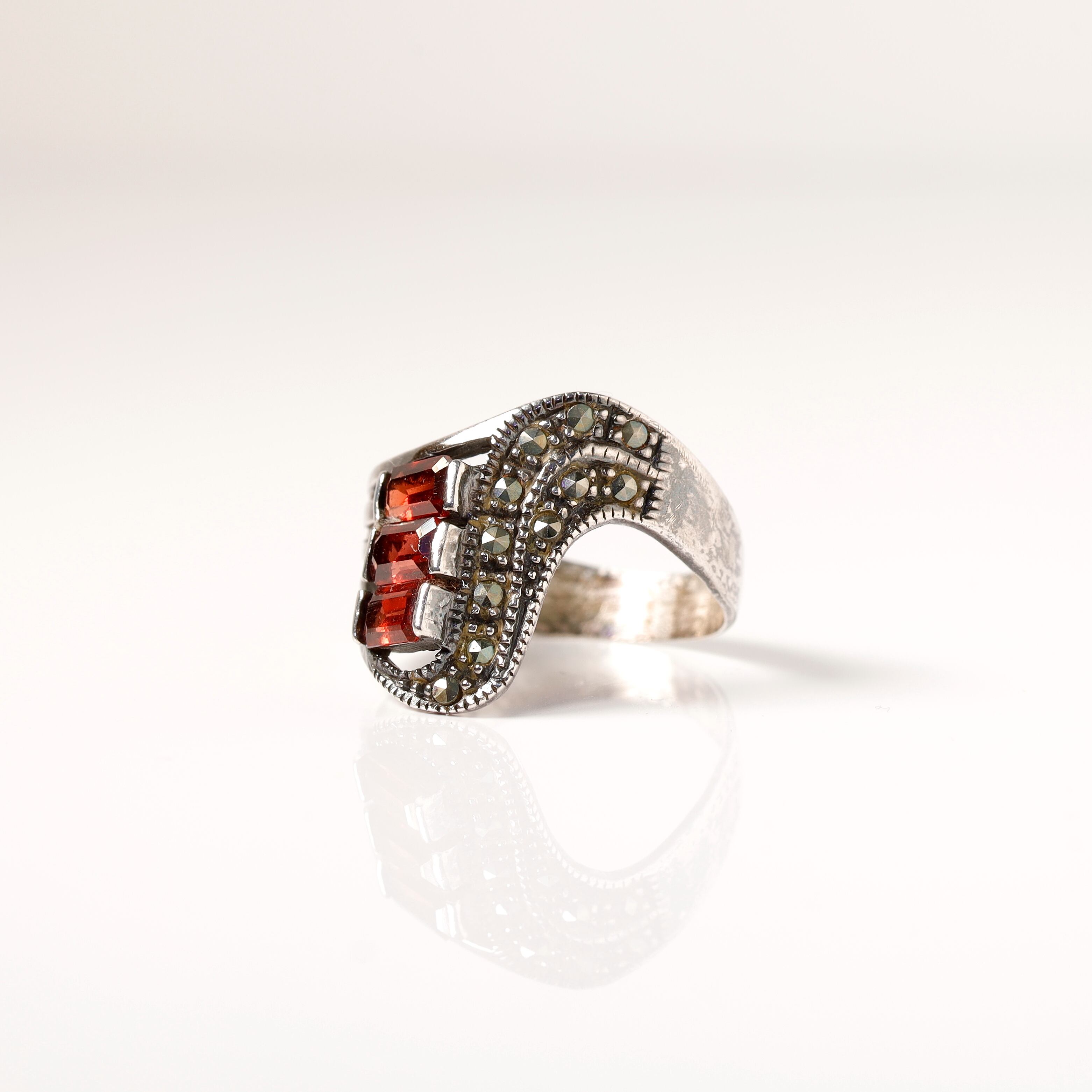 Garnet × Marcasite Ring #14 (used)