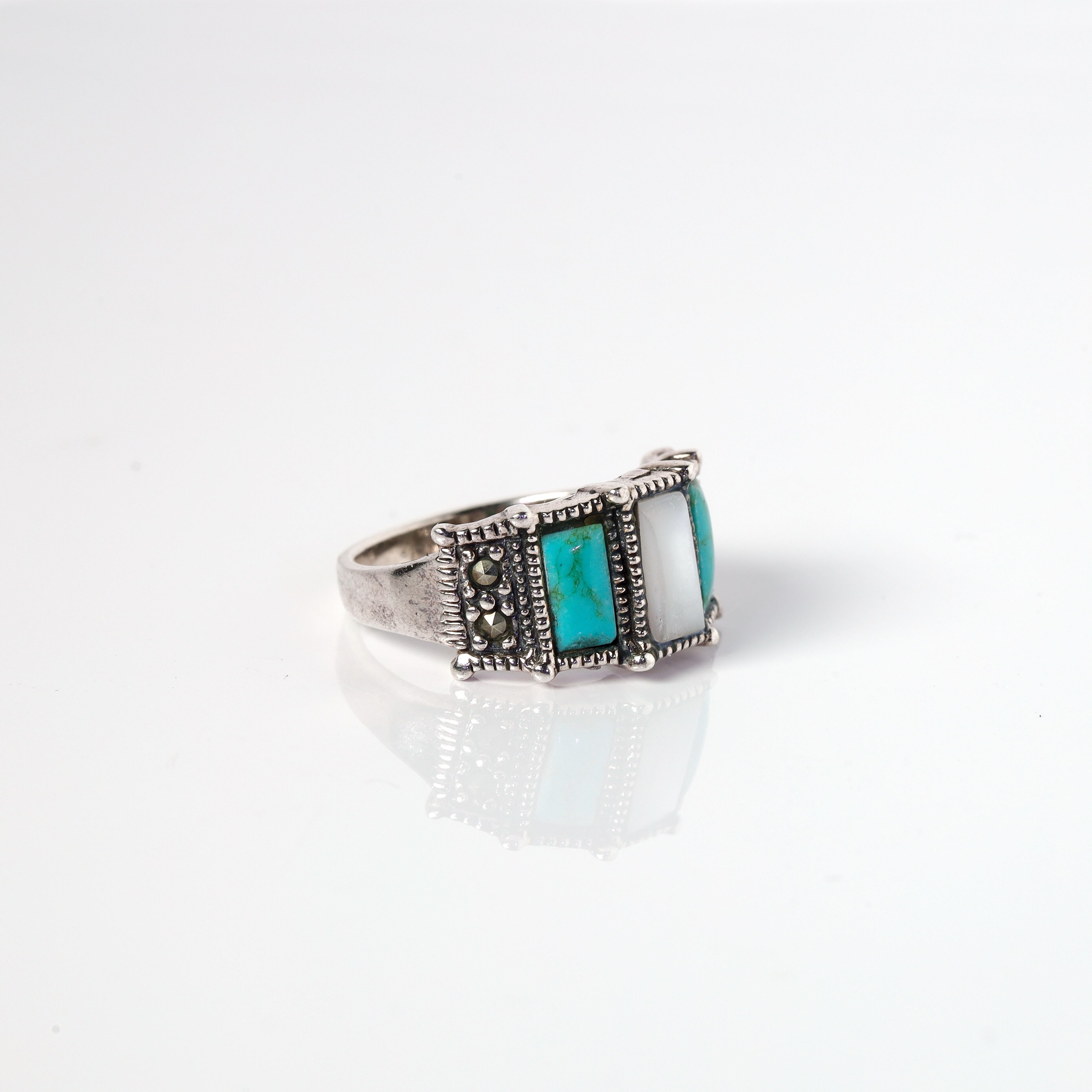 Turquoise × Marcasite × Shell Silver Ring #9.5 (used)