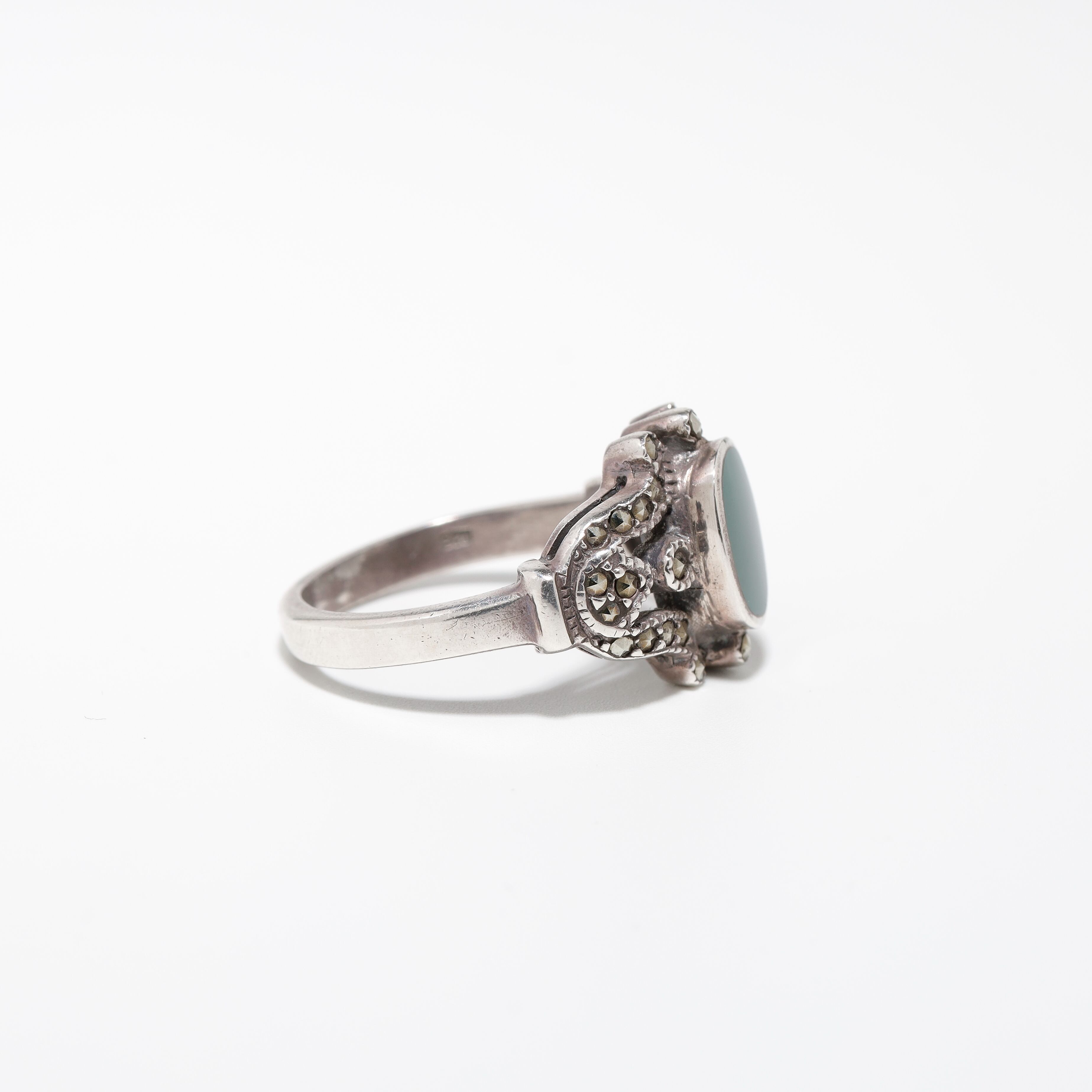奥ゆかしい深緑のグリーンアゲート(瑪瑙)をセットしたシルバーリング。